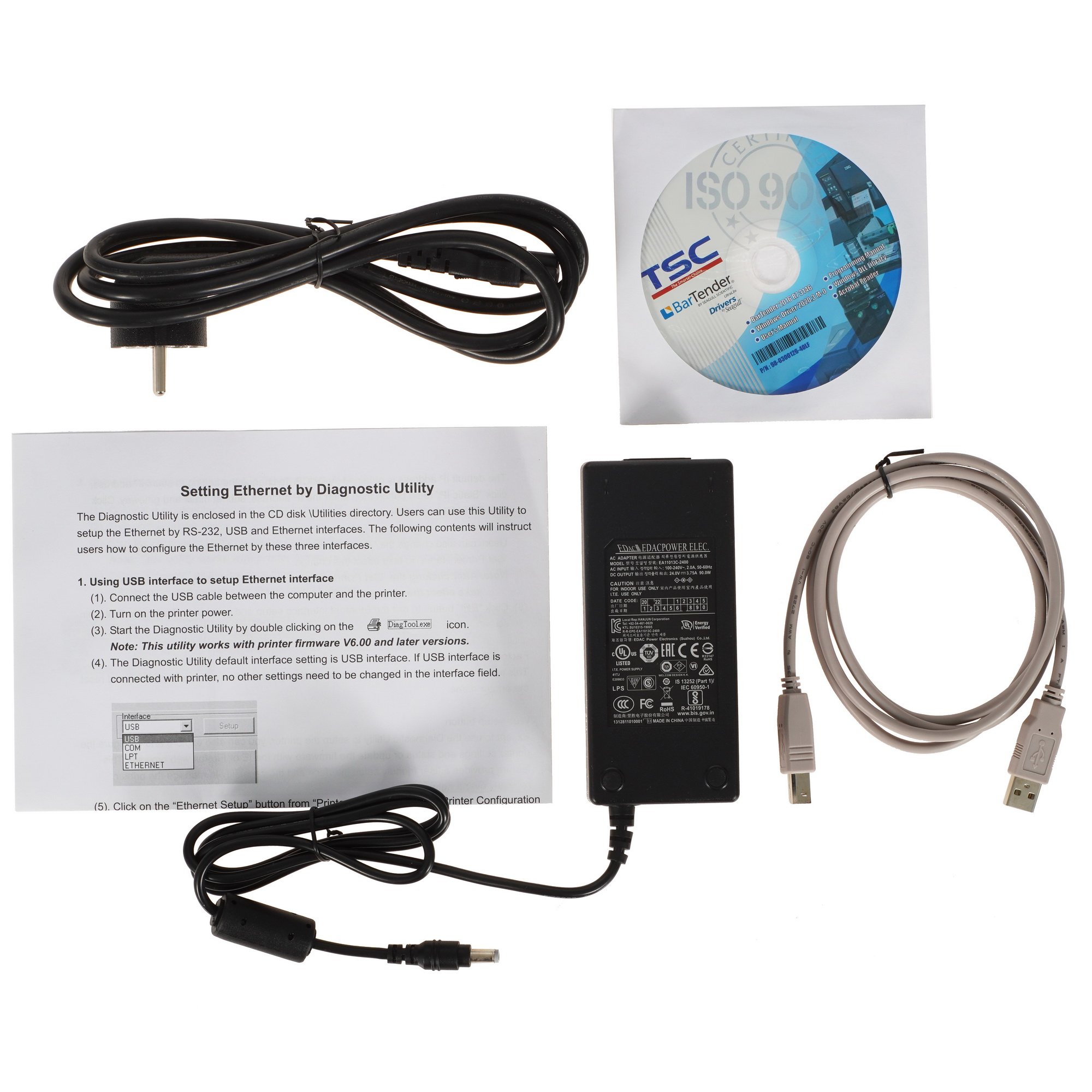 Принтер этикеток TSC TC200 может использовать для подключения один из следующих интерфейсов – Ethernet (RJ45), RS-232 и USB. Модель компактна. Принтер, имеющий размеры 203x191.5x259.3 мм, не займет много места на столе или другой поверхности.