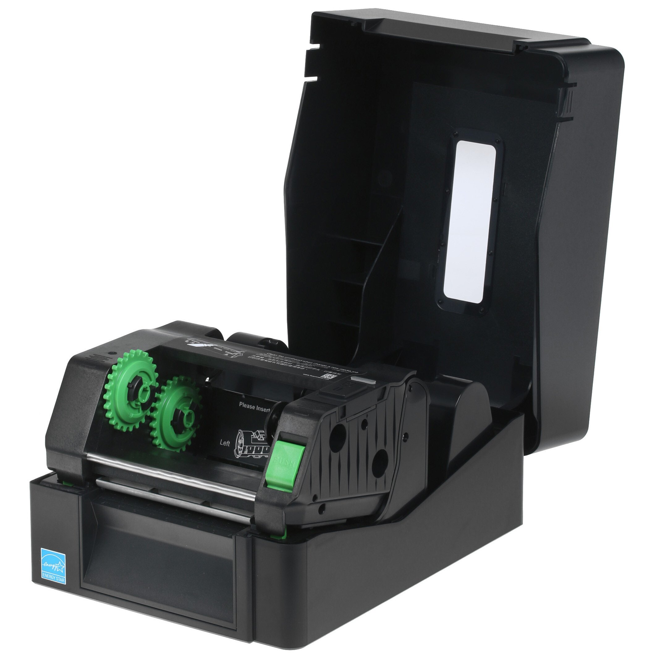 Принтер этикеток TSC TE200 представлен в настольном черном дизайне и предназначается для офисного применения. Устройство осуществляет печать по технологии термообработки на ленточных бумажных носителях со скоростью, достигающей 152.4 мм/сек, при разрешении 203 dpi. Конструкция прибора позволяет использовать ленты с шириной до 10.8 см и диаметром втулки 25.4-38 мм.