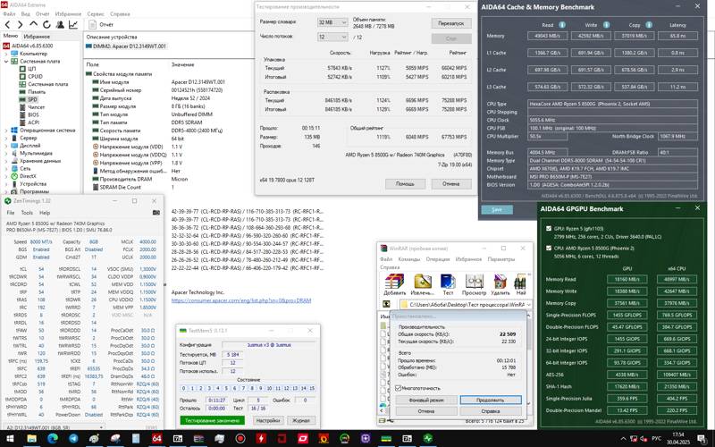 4 исполнительных блока в интегрированном графическом ядре AMD Radeon 740M ускоряют работу с графикой. Встроенный контроллер PCI Express упрощает подключение к материнской плате звуковой и видеокарты, сетевых адаптеров, некоторых видов накопителей. Процессор обладает 2 каналами для подключения ОЗУ DDR5 с общим объемом до 256 ГБ.
