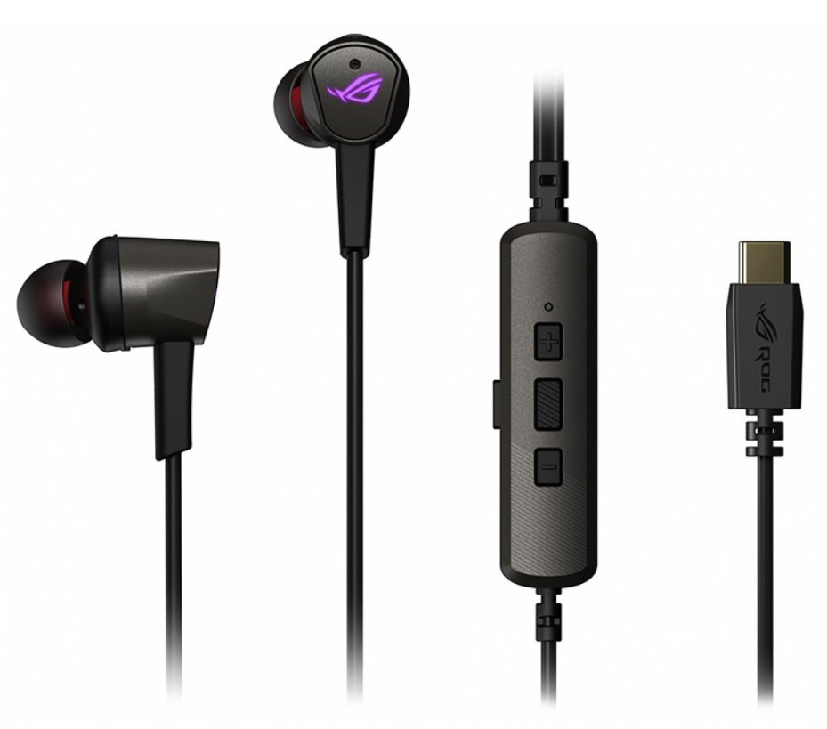 Игровые наушники черные ASUS ROG CETra II (вкладыши, USB-C, RGb подсветка, ПУ, чехол, 90YH02S0-B2UA00)