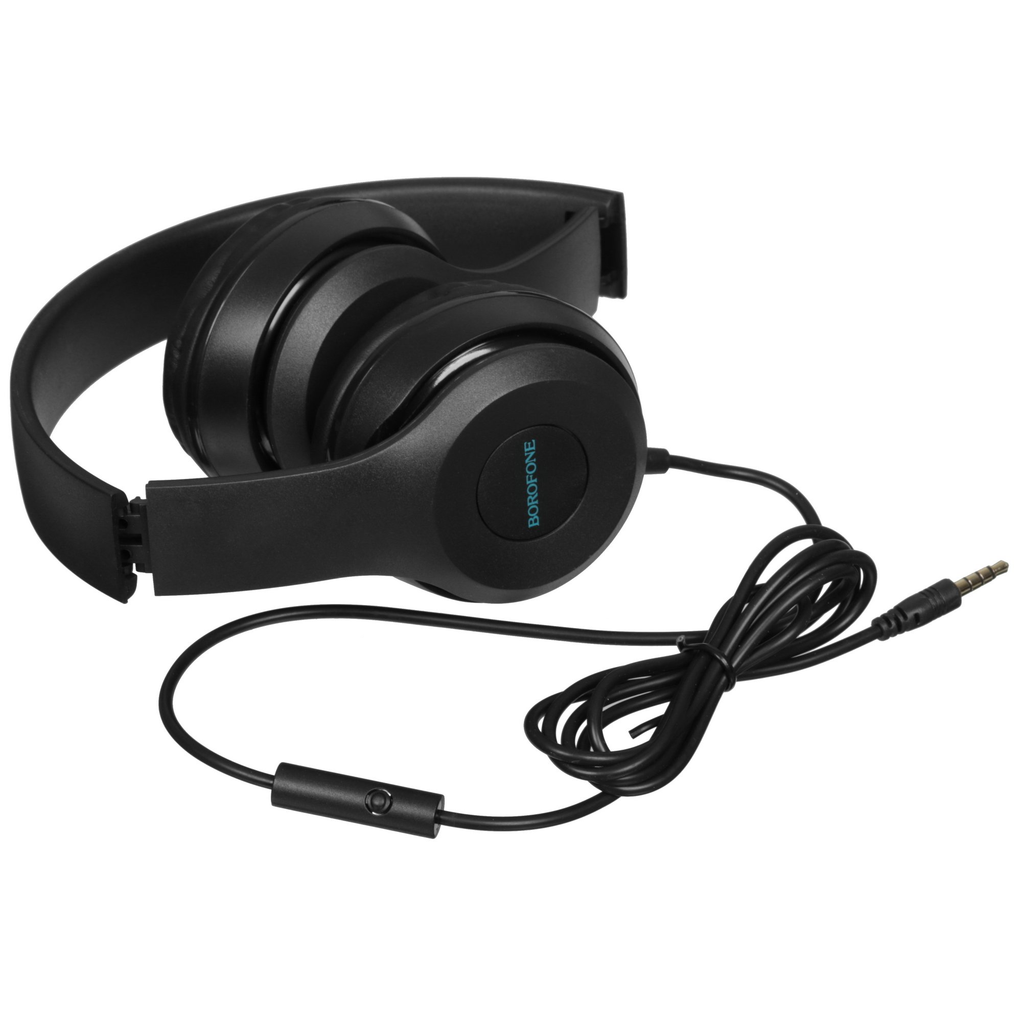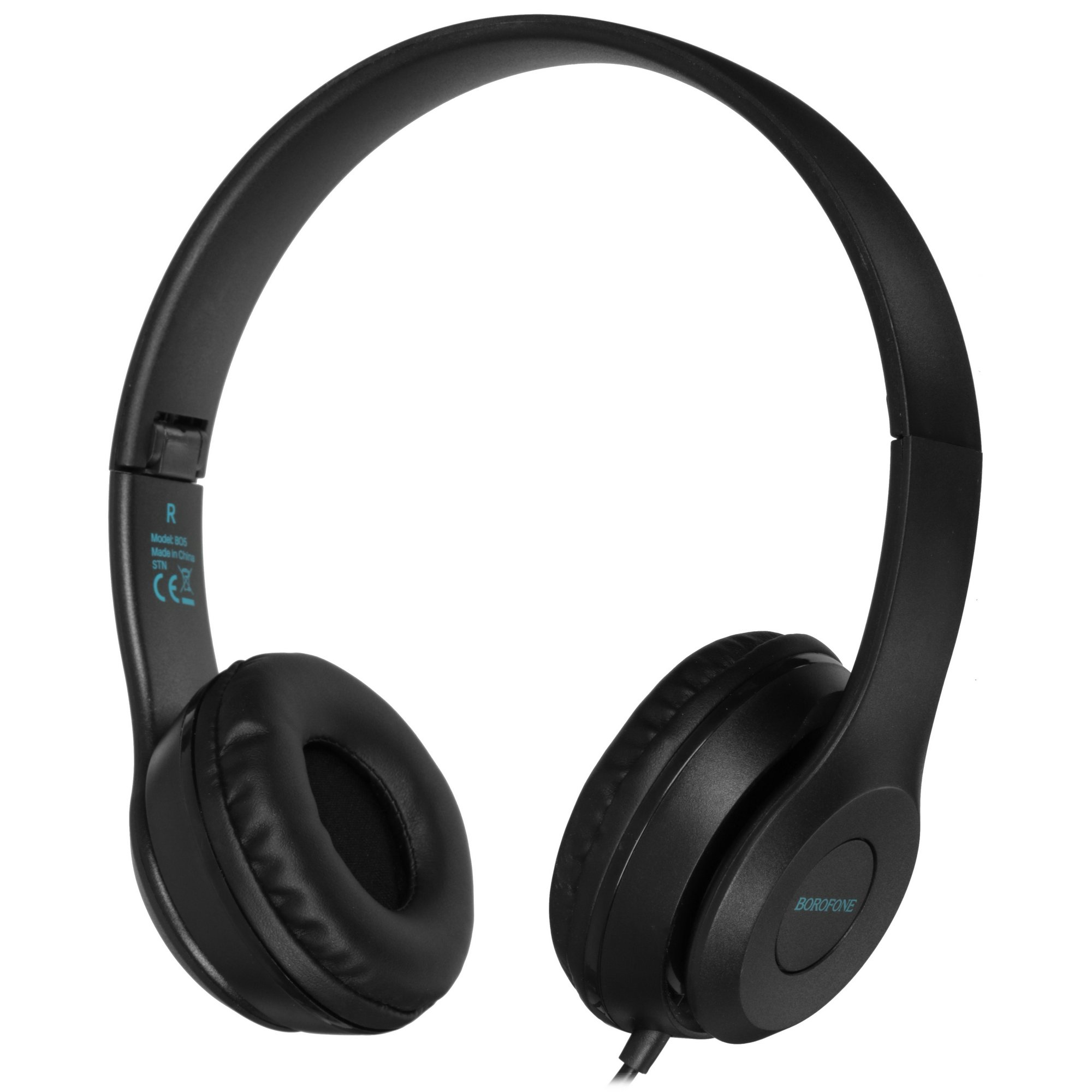 Borofone BO5 - проводные накладные наушники с микрофоном, аудио штекером 3.5 мм, одной кнопкой для управления и кабелем длиной 1.2 м.