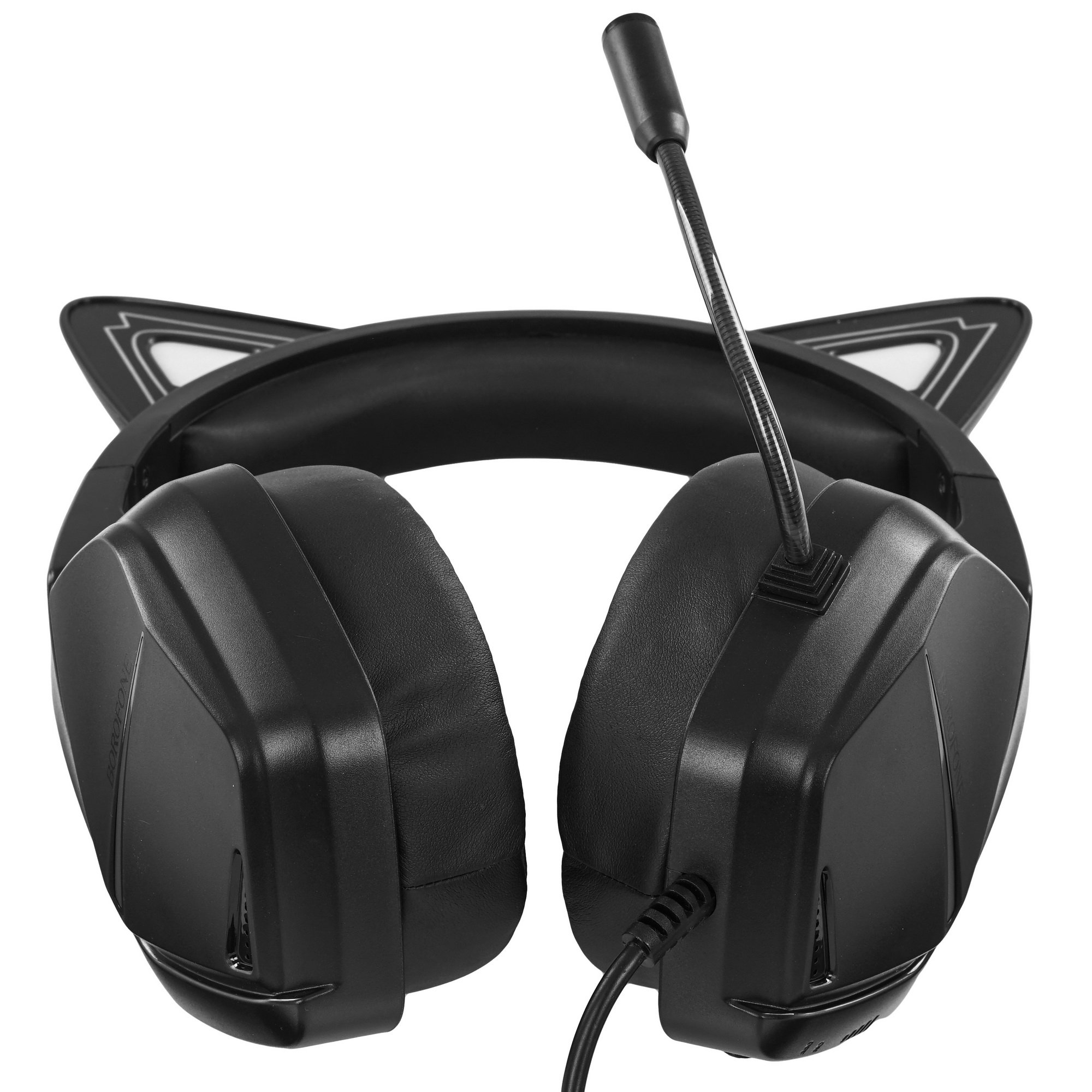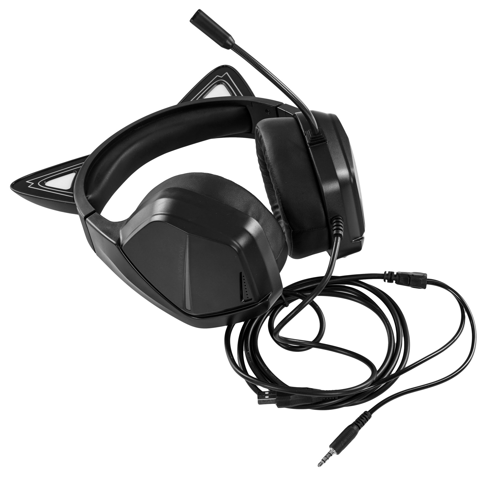 Borofone BO106 - проводная гарнитура с огромными мягкими амбушюрами, регулируемым оголовьем и эффектной подсветкой.