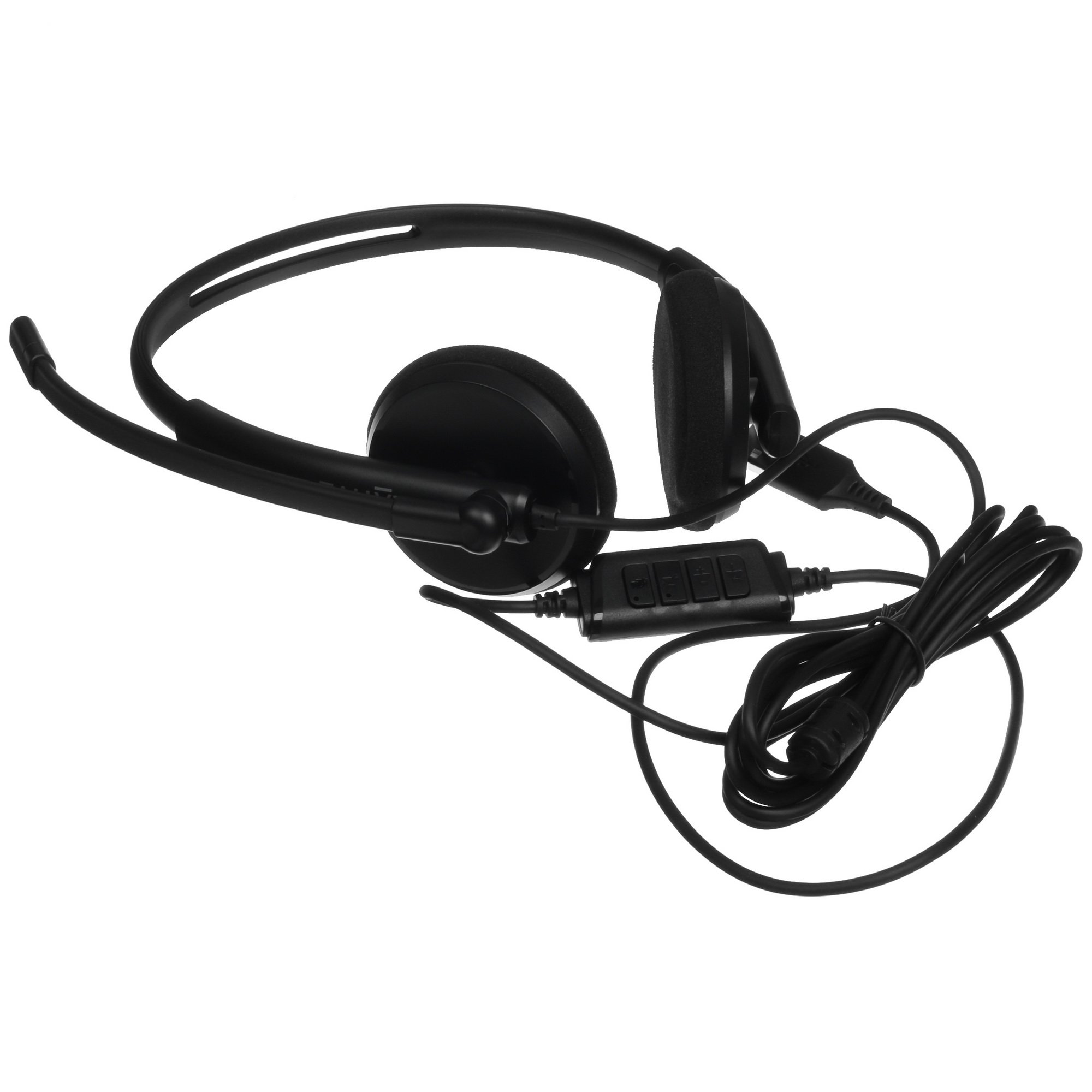 Тонкое оголовье и мягкие накладки не вызывают дискомфорта и усталости в использовании. Для подключения гарнитуры Creative HS-220 применяется кабель длиной 2.4 м с интерфейсом USB. На корпусе есть кнопки включения/выключения и регулировки громкости.