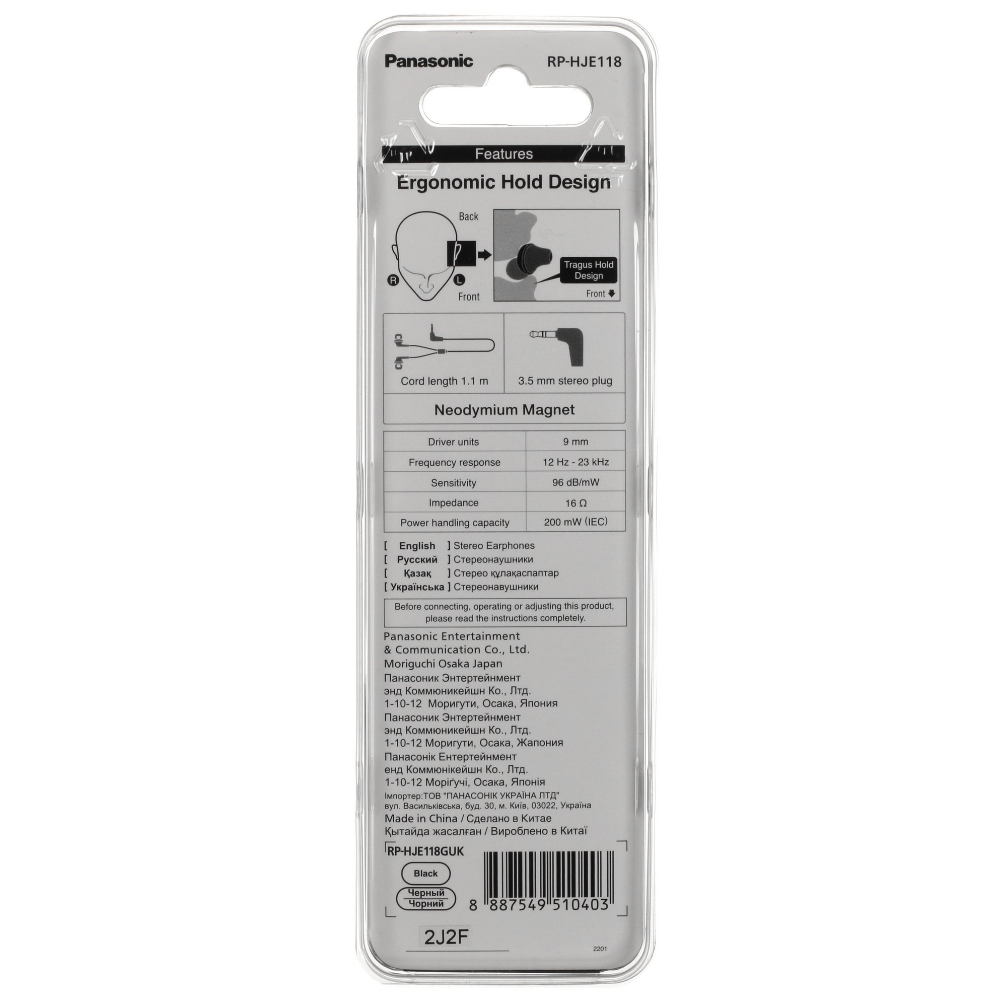 Наушники вкладыши Panasonic RP-HJE118GUK 1.1м черный проводные (в ушной раковине)