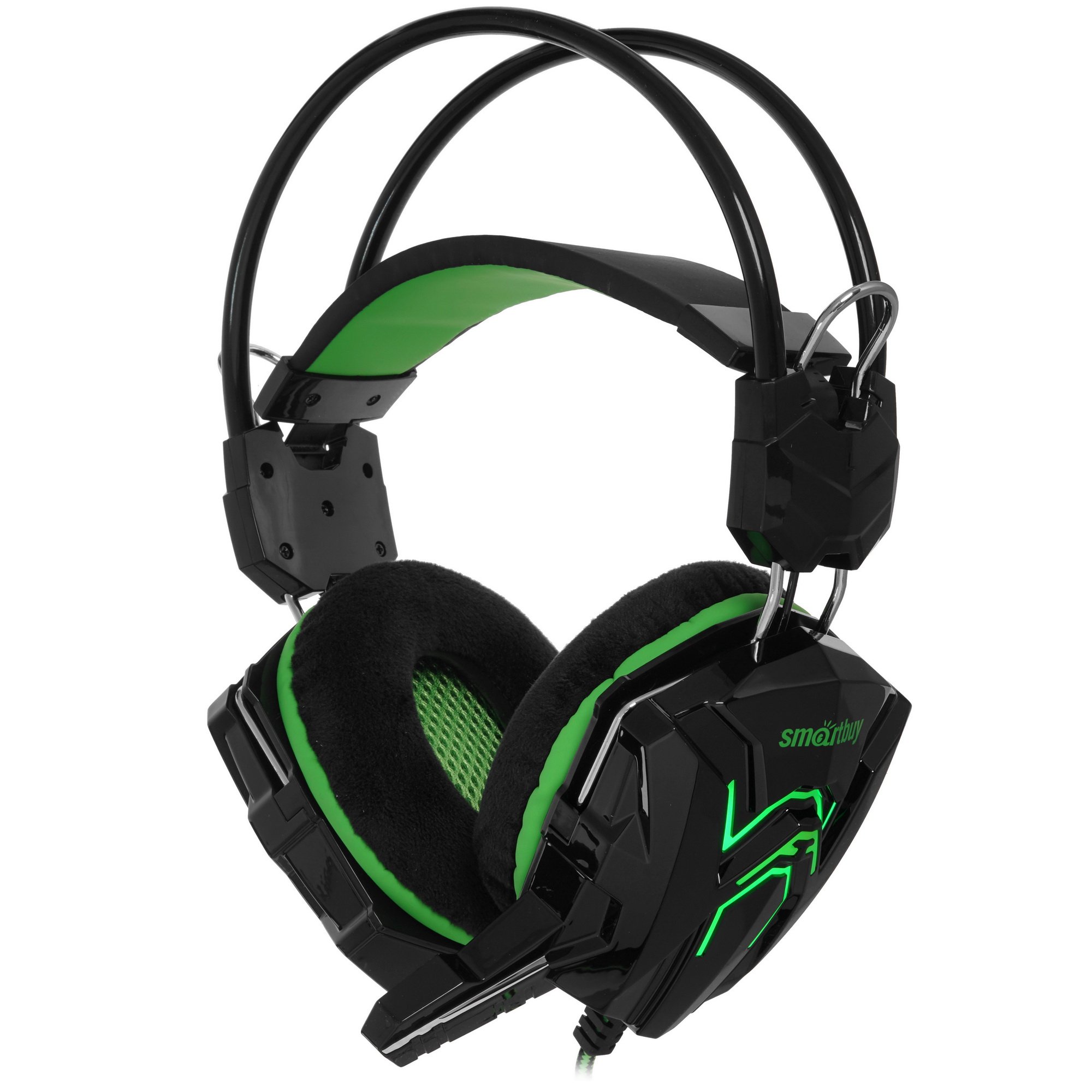 Для подключения гарнитуры применяются разъем USB и два стандартных аудиоразъема jack 3.5 мм. Кабель отличается увеличенной длиной 2.2 метра и прочной тканевой оплеткой. Эргономичное оголовье с регулируемыми металлическими направляющими и амбушюры с отделкой из мягкого велюра делают процесс игры максимально удобным. Из других особенностей Smartbuy RUSH SNAKE отмечаются кнопки управления на чашах и зеленая подсветка (питание от USB).