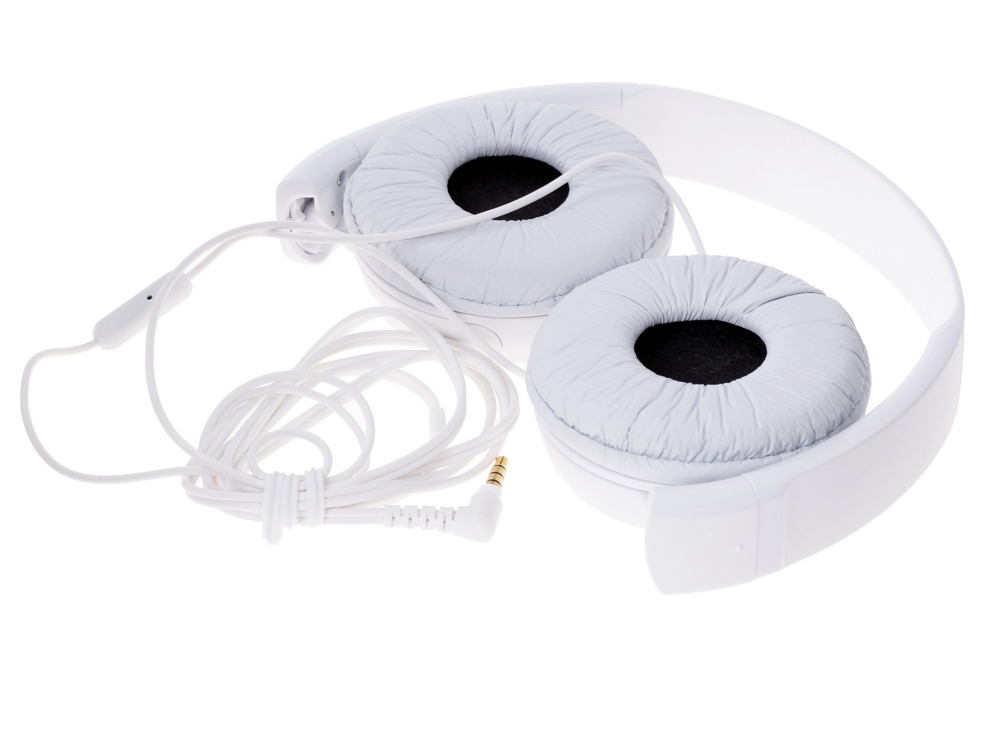 На проводе наушников Sony MDR-ZX110APW размещен специальный микрофон, который улавливает звуки во всех направлениях. Чувствительность наушников – 98 дБ. Они оснащены эластичным кабелем длиной 1,2 м, который присоединяется к каждой чашечке по обе стороны. Каждая амбушюра имеет мягкий уплотнитель, чтобы сделать прослушивание музыки более комфортным и безопасным для слуха. Имея небольшой вес в 120 г, наушники удобно держатся на голове, но не давят и не доставляют дискомфорт.