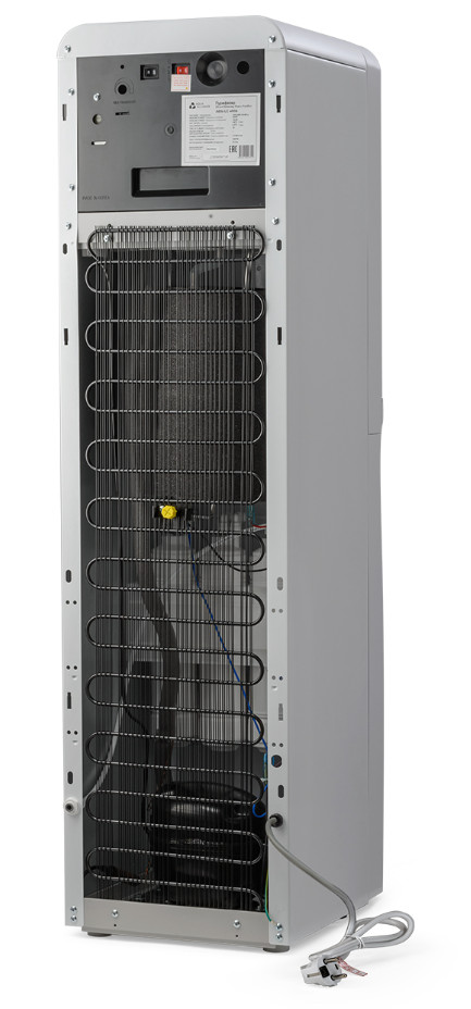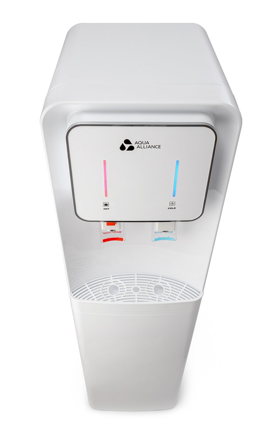 Aquaalliance A65s-LC white оснащен электронными датчиками. Их показания позволяют кулеру нагревать или охлаждать воду в соответствии с заданными значениями. Устройство охлаждает воду до 10 градусов, а максимальная температура нагрева ‒ 90 градусов. Внутри корпуса размещен компрессор, сжимающий фреон. На обратной стороне закреплена радиаторная решетка, которая его охлаждает. Прибор устанавливается на ножки, что делает его устойчивым на поверхности.