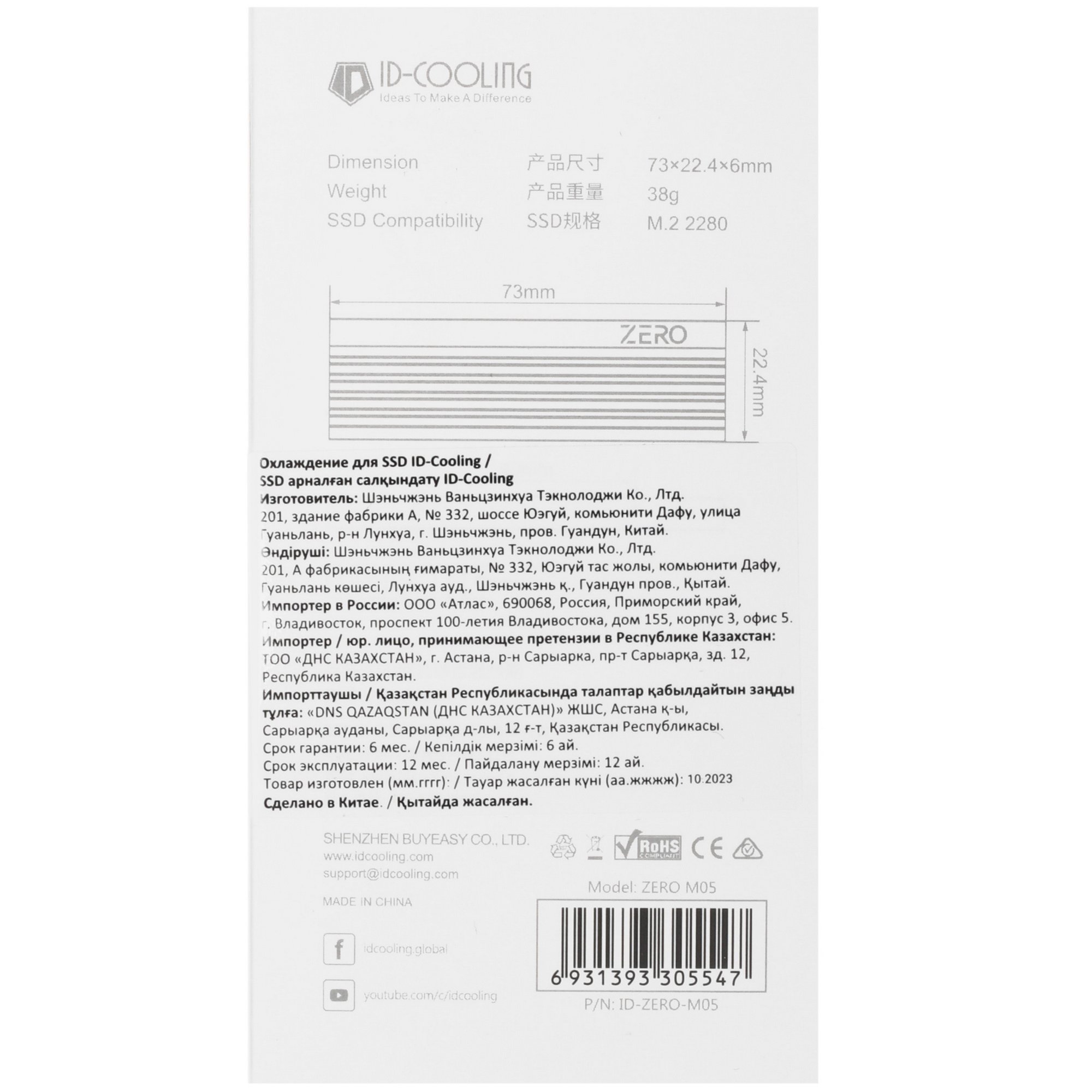 Радиатор для SSD M.2 ID-Cooling ZERO M05 создан из алюминия и черного анодированного металла. Он призван охлаждать твердотельный накопитель и защищать ваши данные. Благодаря универсальному форм-фактору 2280 устройство совместимо с большинством систем. Для увеличения производительности был использован алюминиевый материал, который увеличивает площадь рассеивания тепла. За счет этого твердотельный накопитель все время остается прохладным. Использовать радиатор для SSD M.2 ID-Cooling ZERO M05 просто: это не требует дополнительных настроек.