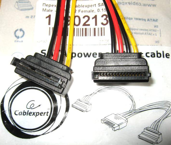 Длины кабеля Cablexpert, равной 0.15 м, достаточно будет для того, чтобы компактно разместить внутри корпуса два жестких диска и, при этом, не тратить место на лишние провода. Выходные разъемы обладают угловой конструкцией, что обеспечивает комфортное подключение. Аксессуар включает в себя три провода в красном, желтом и черном цветах.