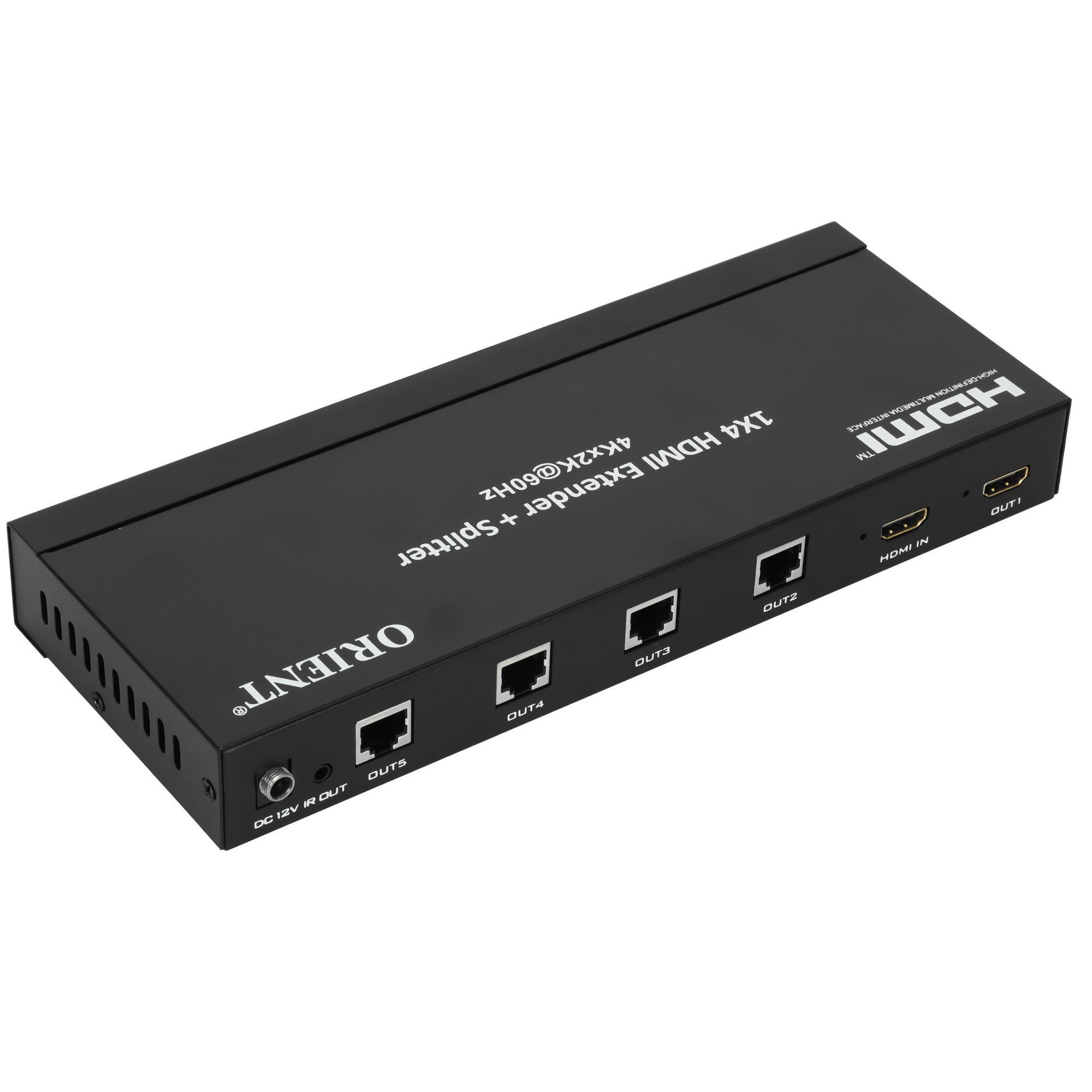 Разветвитель ORIENT HSP0104VE-2.0 используется при передаче видеосигнала и звука. Входной разъем устройства – HDMI. На выходе расположены порт HDMI и 4 порта RJ45. Разветвитель рассчитан на подключение 6 устройств. Модель получает питание от сети и поддерживает длину кабеля до 60 м.