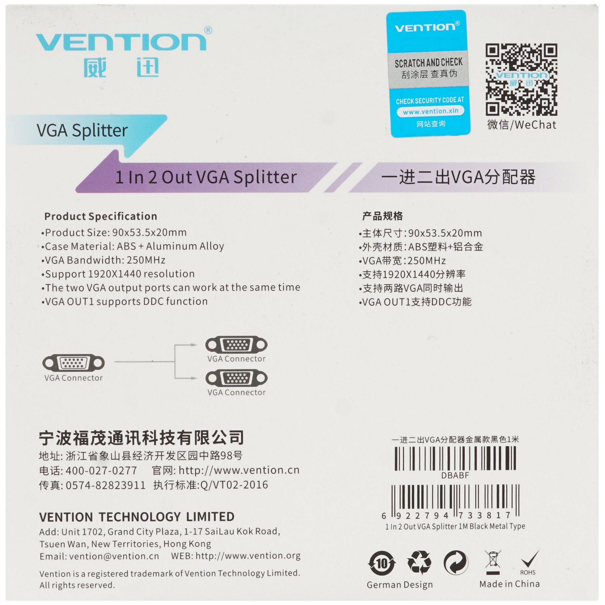 Разветвитель Vention VGA 15M/2х15F DBABF использует в своей основе первоклассные компоненты и материалы, что обеспечивает передачу сигнала без помех и промедлений. Для работы устройства используется напряжение 5 В. Комплект поставки включает в себя USB-кабель питания.