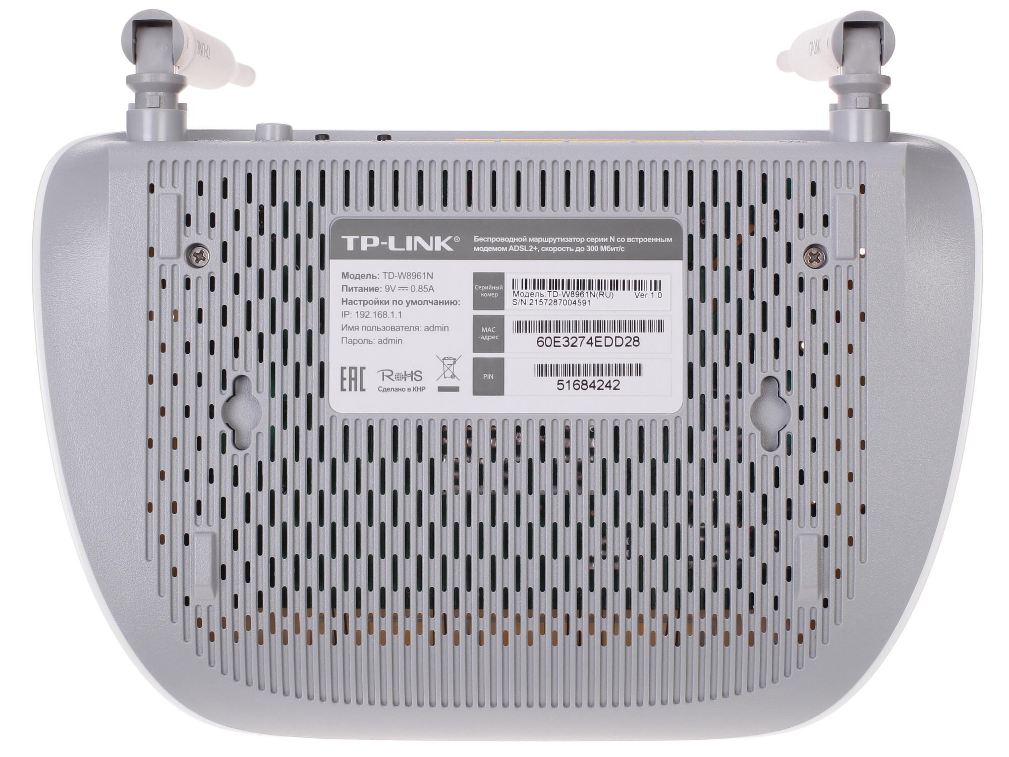 Маршрутизатор ADSL2+ TP-LINK TD-W8961N – это универсальное многофункциональное сетевое устройство. Модель представляет собой коммутатор на 4 порта, беспроводную точку доступа, маршрутизатор NAT и модем ADSL. Корпус модели оснащен двумя съемными антеннами, а верхняя и нижняя поверхности имеют отверстия, которые помогают вентиляции устройства и служат нестандартной дизайнерской особенностью.