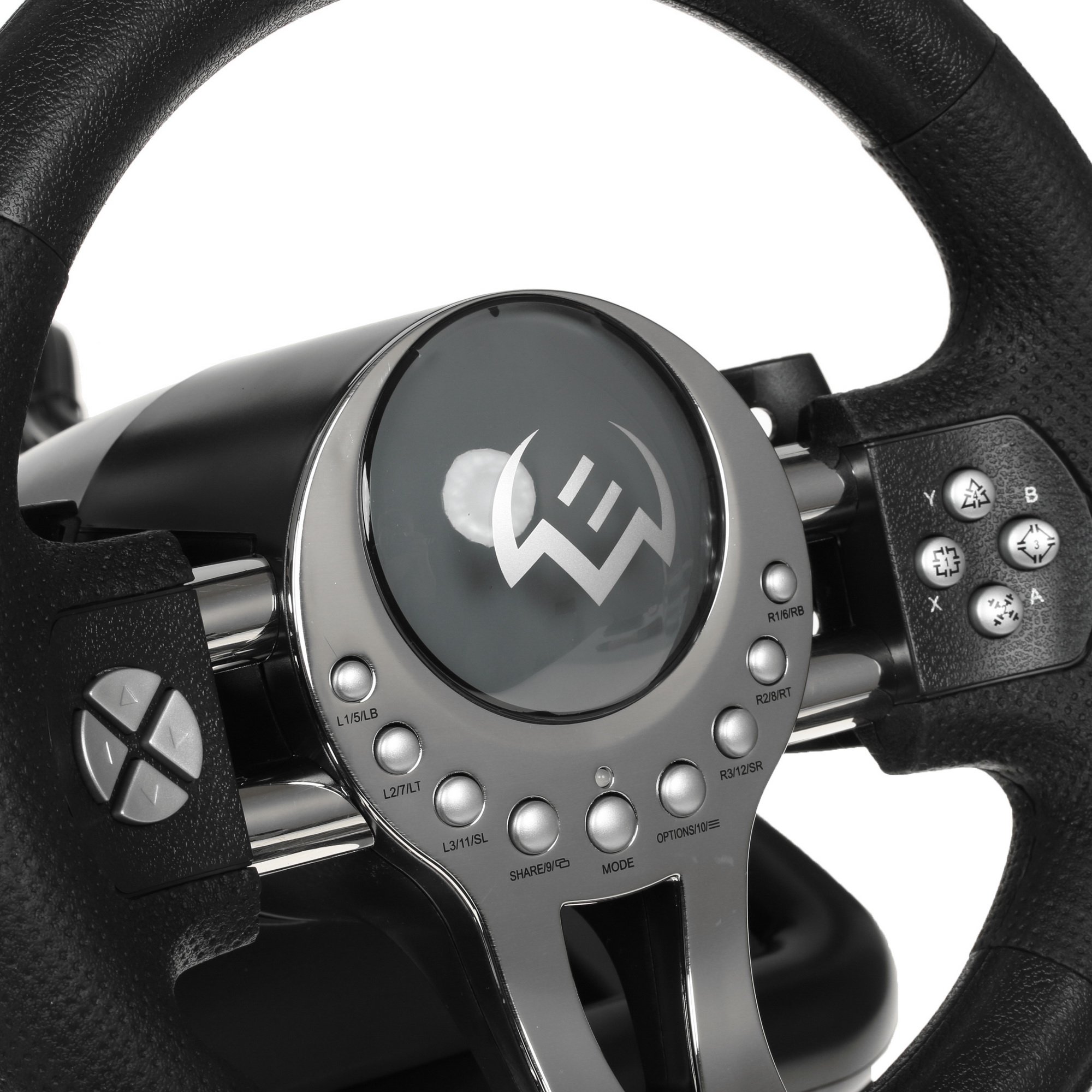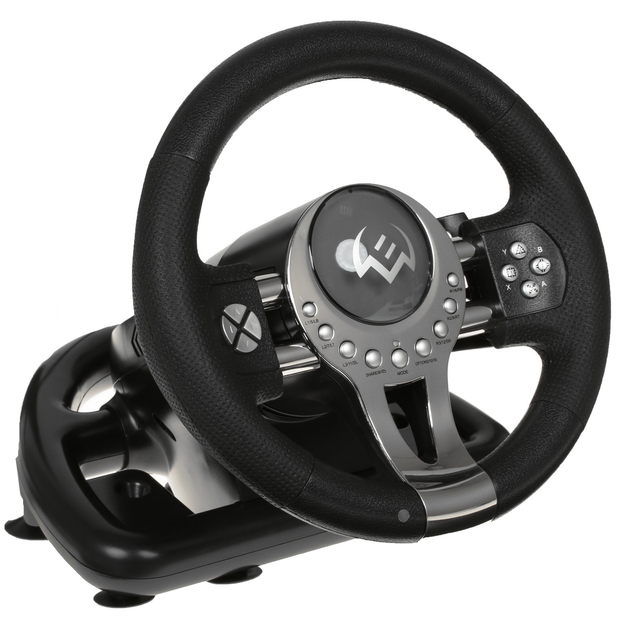 Руль SVEN GC-W800 выполнен в черном цвете и предназначен для использования во время игры в гоночные симуляторы. Благодаря этому стильному аксессуару для ПК или игровой консоли PlayStation 3, PlayStation 4, Xbox One геймер сможет более полно ощутить нюансы управления виртуальным гоночным автомобилем. Например, функция виброотдачи, реализованная за счет 2 интегрированных вибромоторов, отвечает за сопротивление руля при проезде неровных участков или выполнении резких маневров.