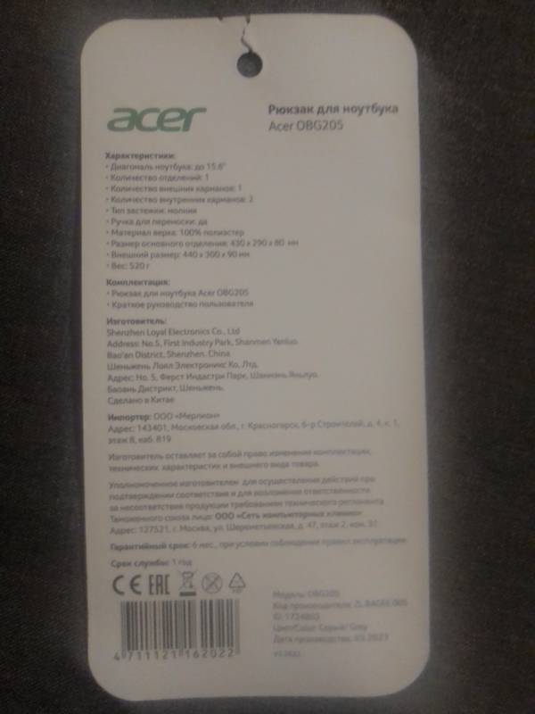 Рюкзак Acer LS series OBG205 оформлен в лаконичном сером цвете и станет надежным помощником на каждый день. Основное отделение с дополнительным мягким отсеком обеспечивает безопасную транспортировку портативного компьютера с экраном до 15.6 дюйма. В качестве материала применяется нейлон с хорошими прочностными характеристиками и способностью отталкивания влаги. На фронтальной стороне расположен карман для размещения мелких принадлежностей. Благодаря ручке и плечевым ремням с регулировкой по размеру обеспечивается комфортное ношение рюкзака Acer LS series OBG205.