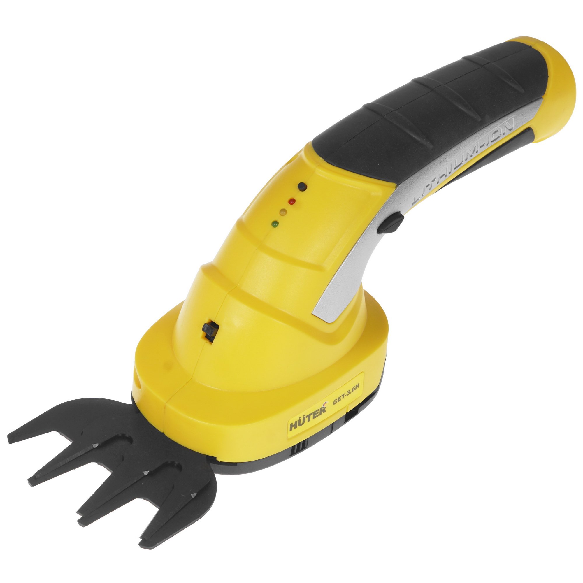 Садовые ножницы Huter GET-3.6H не требуют подключения к электросети: встроенный литий-ионный аккумулятор емкостью 1.5 А*ч гарантирует 20 минут непрерывной работы без подзарядки. Устройство можно использовать в качестве газонокосилки, если оснастить его лезвием для работы в режиме стрижки газона, которое присутствует в комплекте поставки. Длина режущего двустороннего полотна равна 120 мм, оно способно справиться с резом веток толщиной до 8 мм.