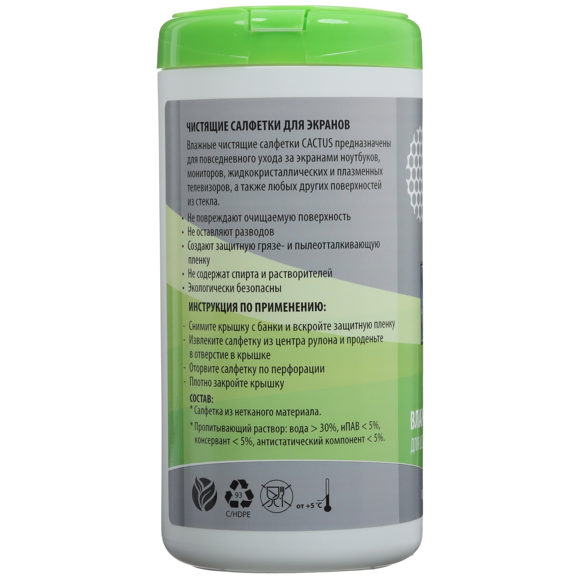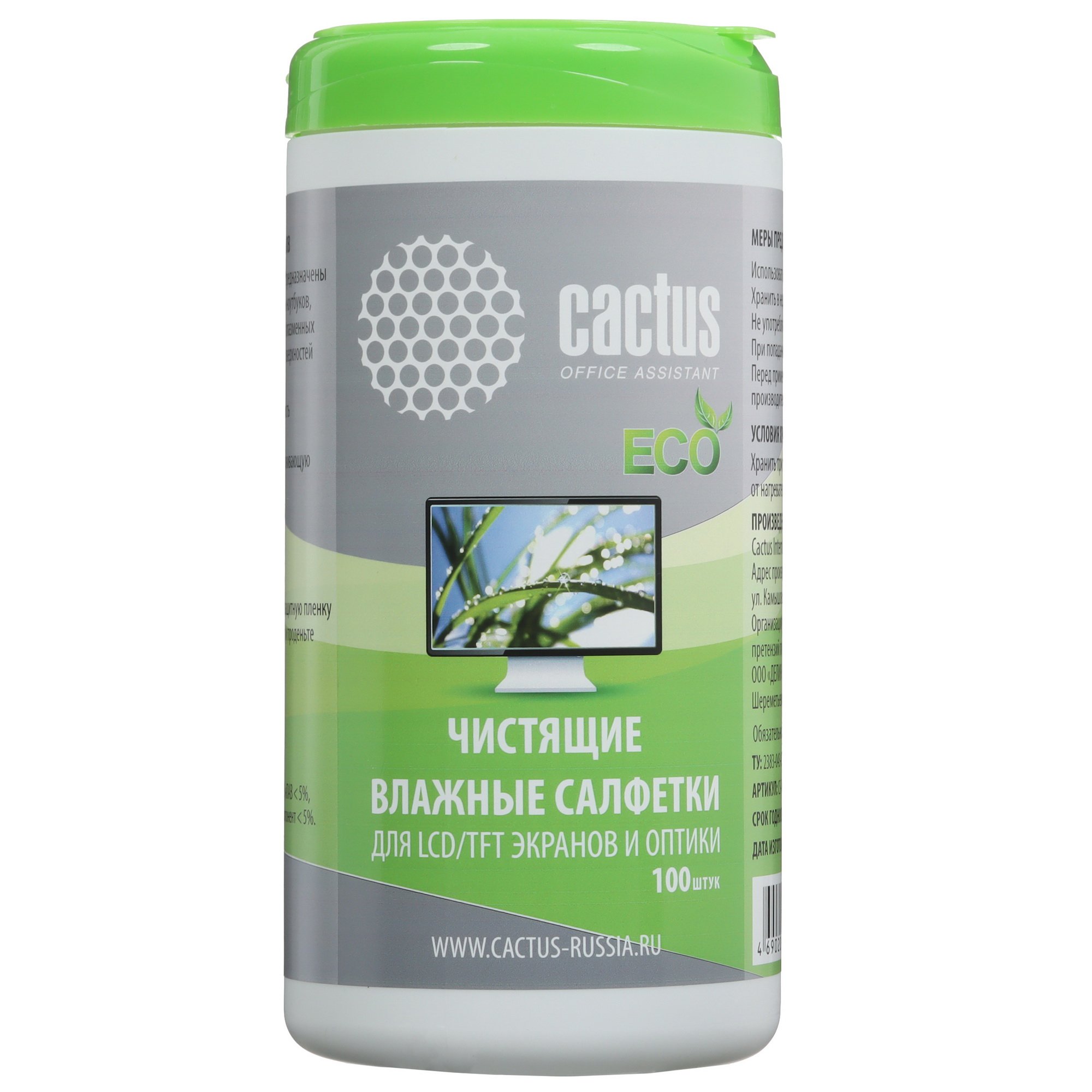 Салфетки Cactus CS-T1001E для экранов и оптики туба 100шт влажные