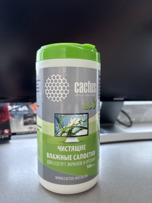 Влажные салфетки Cactus CS-T1001E предназначены для очистки экранов. Тип упаковки – туба. Количество салфеток Cactus CS-T1001E – 100. Изделие не оставляет разводов.