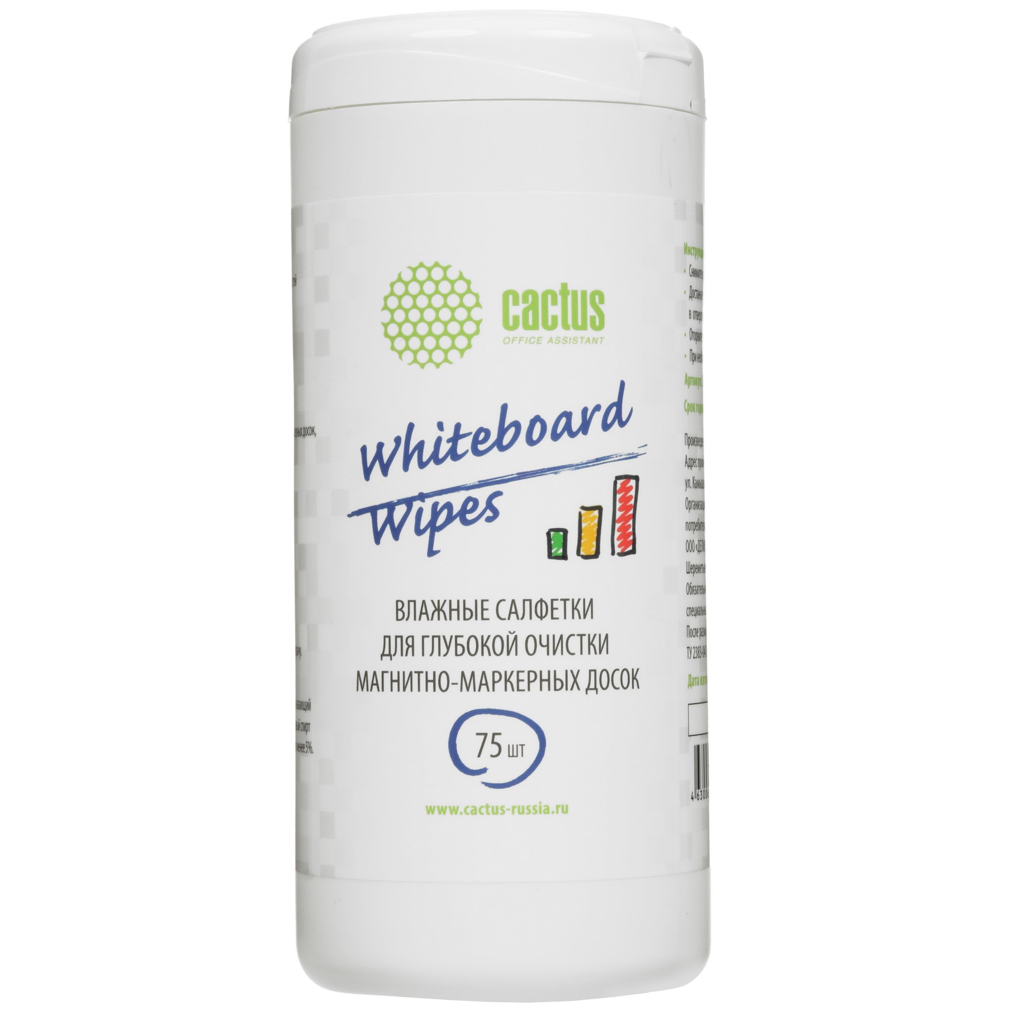 Салфетки Cactus CS-WB075 для маркерных досок туба 75шт влажных