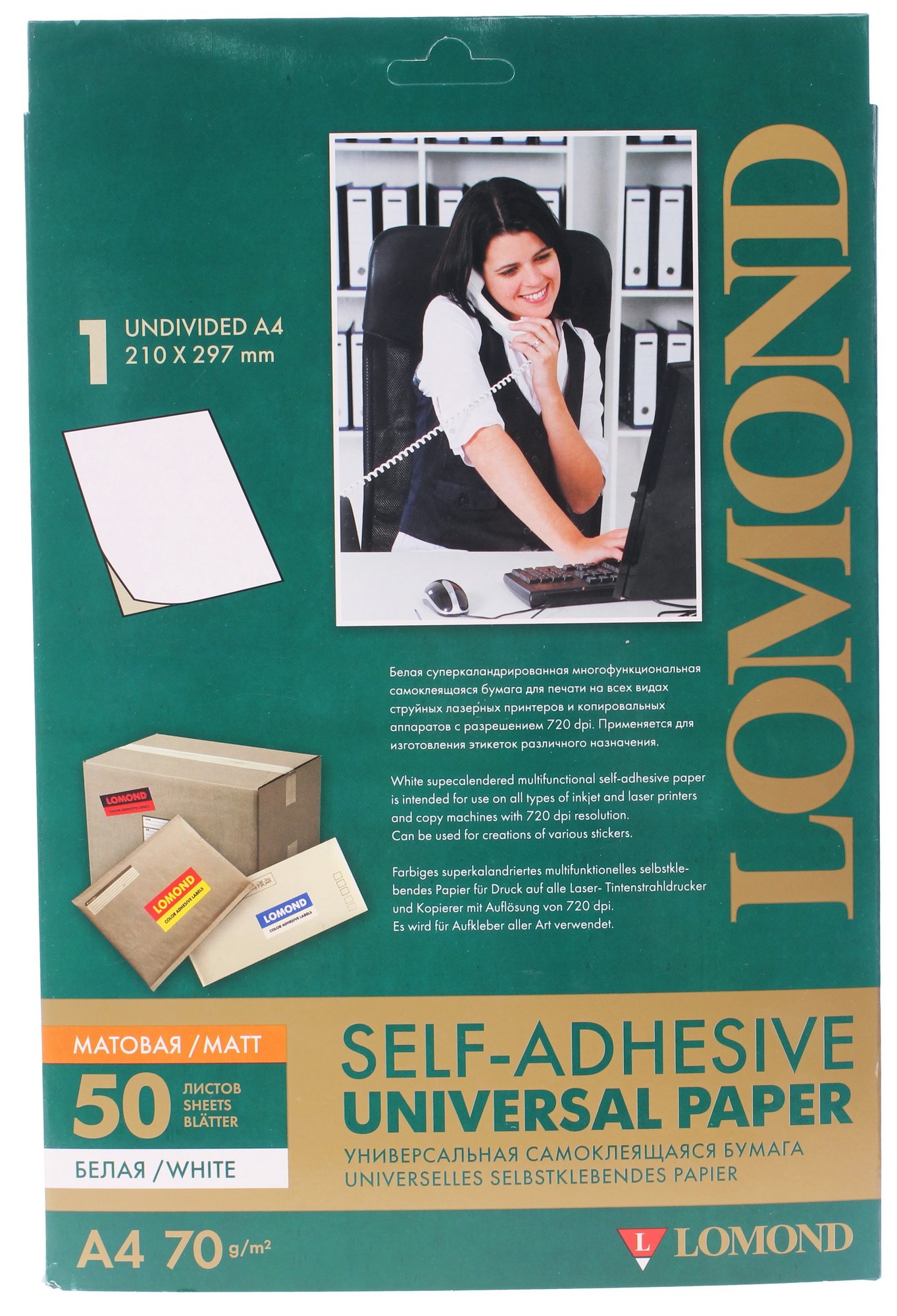 Самоклеящаяся бумага Lomond универсальная для этикеток, A4, (210 x 297 мм), 70 г/м2, 50 листов
