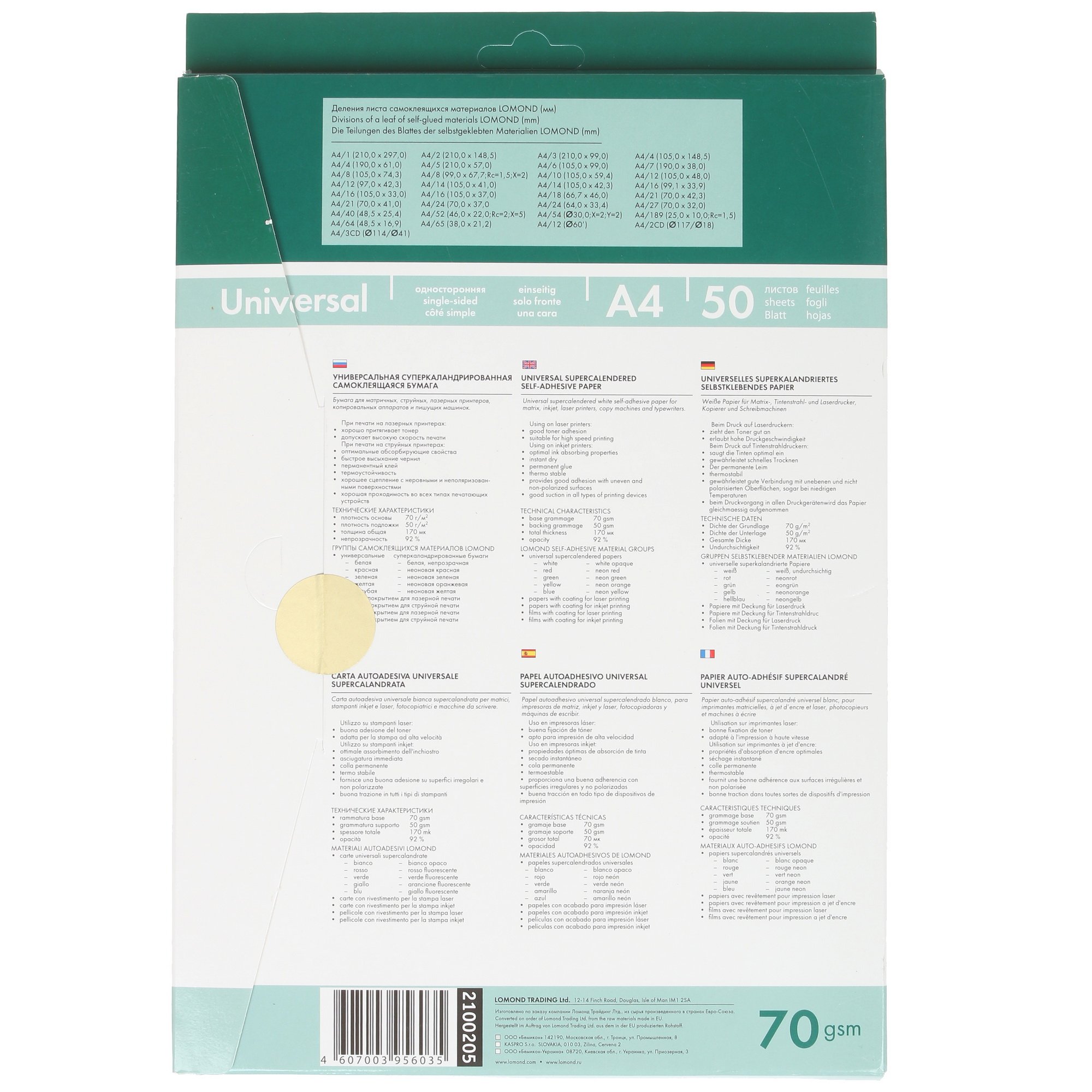 Самоклеящаяся бумага Lomond универсальная для этикеток, A4, 64 делен. (48.5 x 16.9 мм), 70 г/м2, 50 листов.