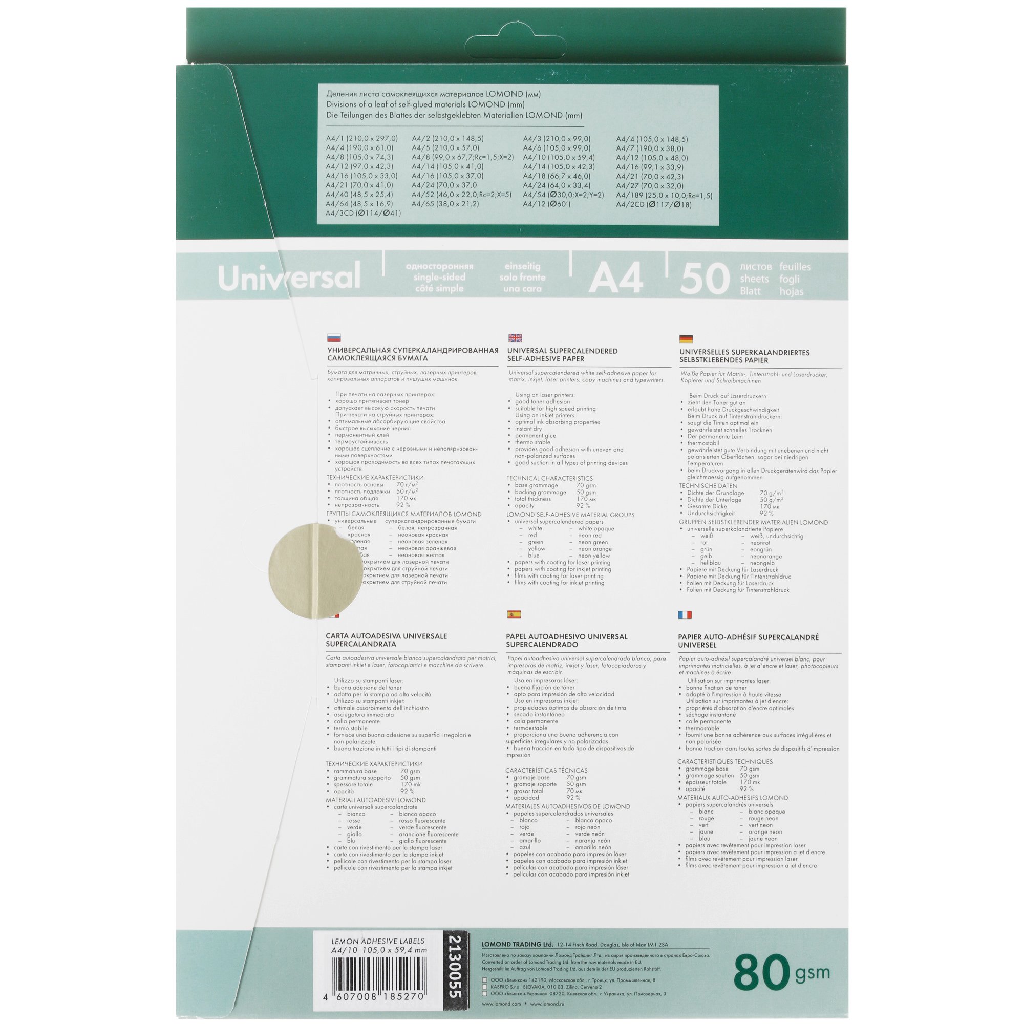 Самоклеящаяся бумага Lomond универсальная для этикеток, A4, 6 делен. (105 x 99 мм), 70 г/м2, 50 листов