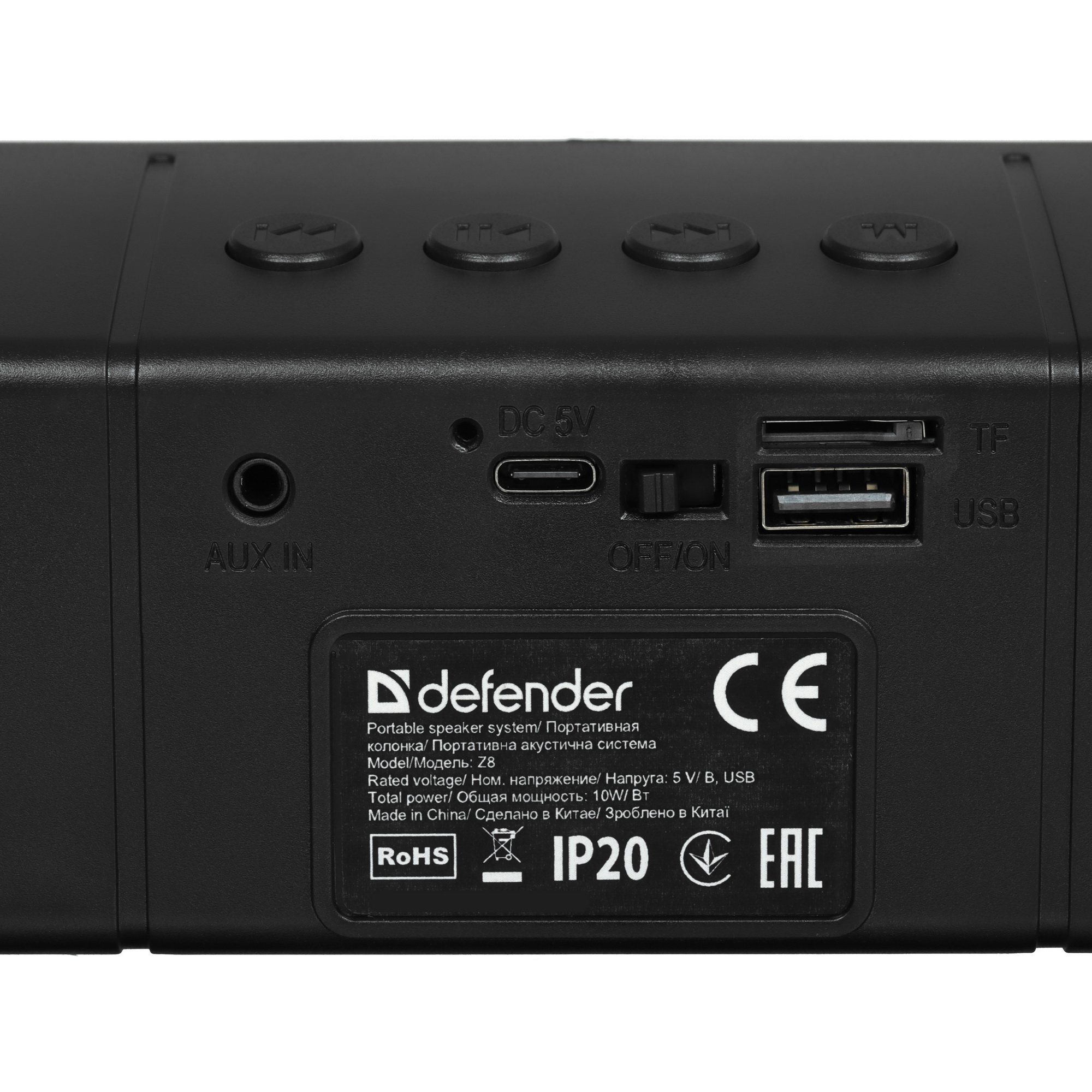 Саундбар Defender Z8 выполняется в виде черной звуковой панели с двумя среднечастотными динамиками диаметром по 50 мм каждый. Стереосистема для настольного размещения будет актуальна при использовании с ПК или ноутбуком и обеспечит более высокое качество воспроизведения звука, чем штатная встроенная акустика. Двухканальная акустическая система с суммарной выходной мощностью звука 10 Вт поддерживает передачу звуков из диапазона частот 90-20000 Гц.