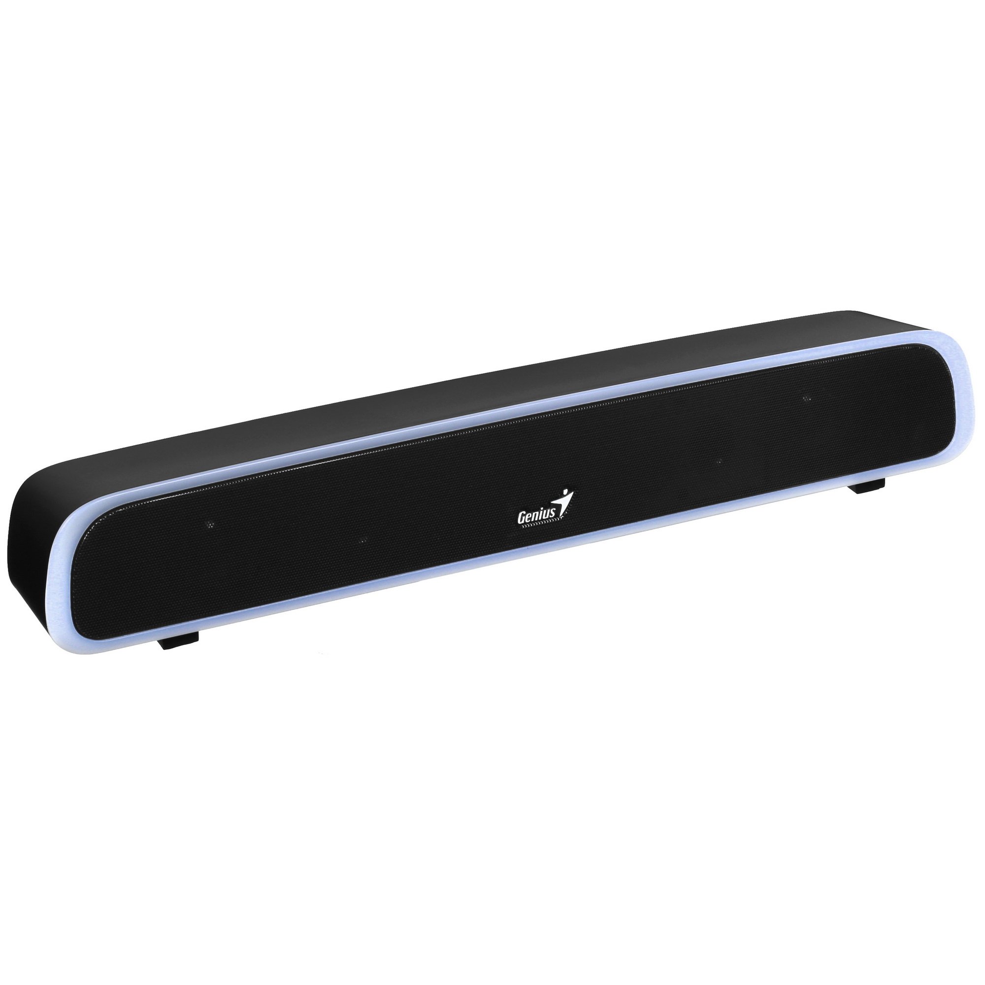 Саундбар Genius 200BT выполнен в черном корпусе со скругленной рамкой, в которую встроена RGB-подсветка. Устройство устанавливается на опоры для большей устойчивости. Обладая мощностью 4 Вт, акустика выдает качественный звук. Саундбар является хорошим дополнением для телевизора или ПК, повышает громкость звучания.
