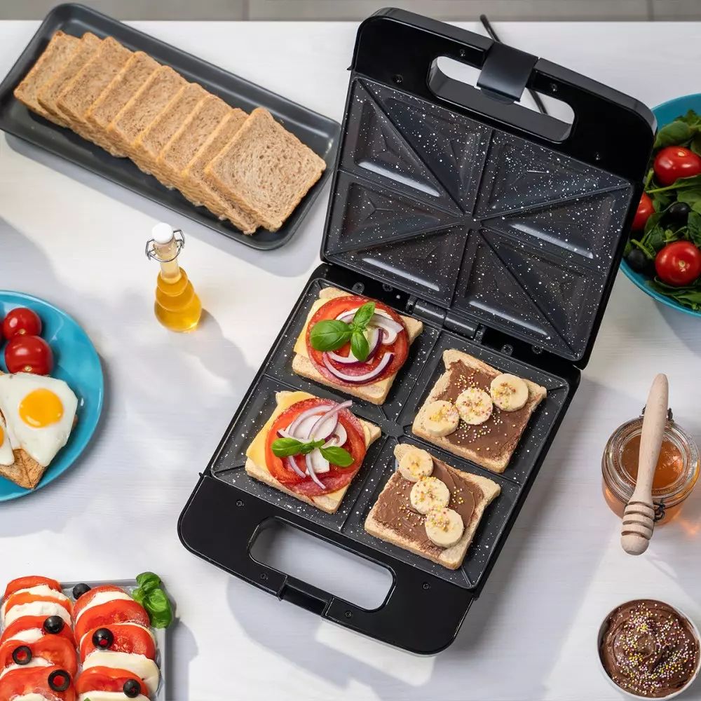 Сэндвичница Zelmer ZSM7400 поможет вам приготовить сытный и вкусный завтрак или перекус. Благодаря высокой мощности 1400 Вт устройство очень быстро будет готово к работе. Световые индикаторы подскажут, когда рабочая поверхность достаточно нагреется – пора закладывать хлеб. Панели снабжены антипригарным покрытием – продукты не будут прилипать. Корпус выполнен из прочного пластика. Ручка термоизолирована и не нагревается – к ней можно спокойно прикасаться. Резиновые ножки обеспечат устойчивость и не позволят прибору скользить по столешнице.