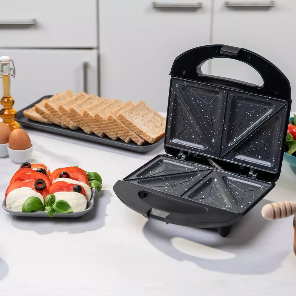 Корпус сэндвичницы Zelmer ZSM7861 выполнен из прочного пластика с вставками из металла, а рабочие панели покрыты антипригарным покрытием. Прибор обладает мощностью 750 Вт. О нагреве устройства оповестит красный индикатор, а о том, что пора закладывать продукты, – зелёный. Фиксатор крышки обеспечит плотное прилегание и удержание тепла, чтобы вам не пришлось долго ждать. Всего через несколько минут любимые сэндвичи будут готовы.