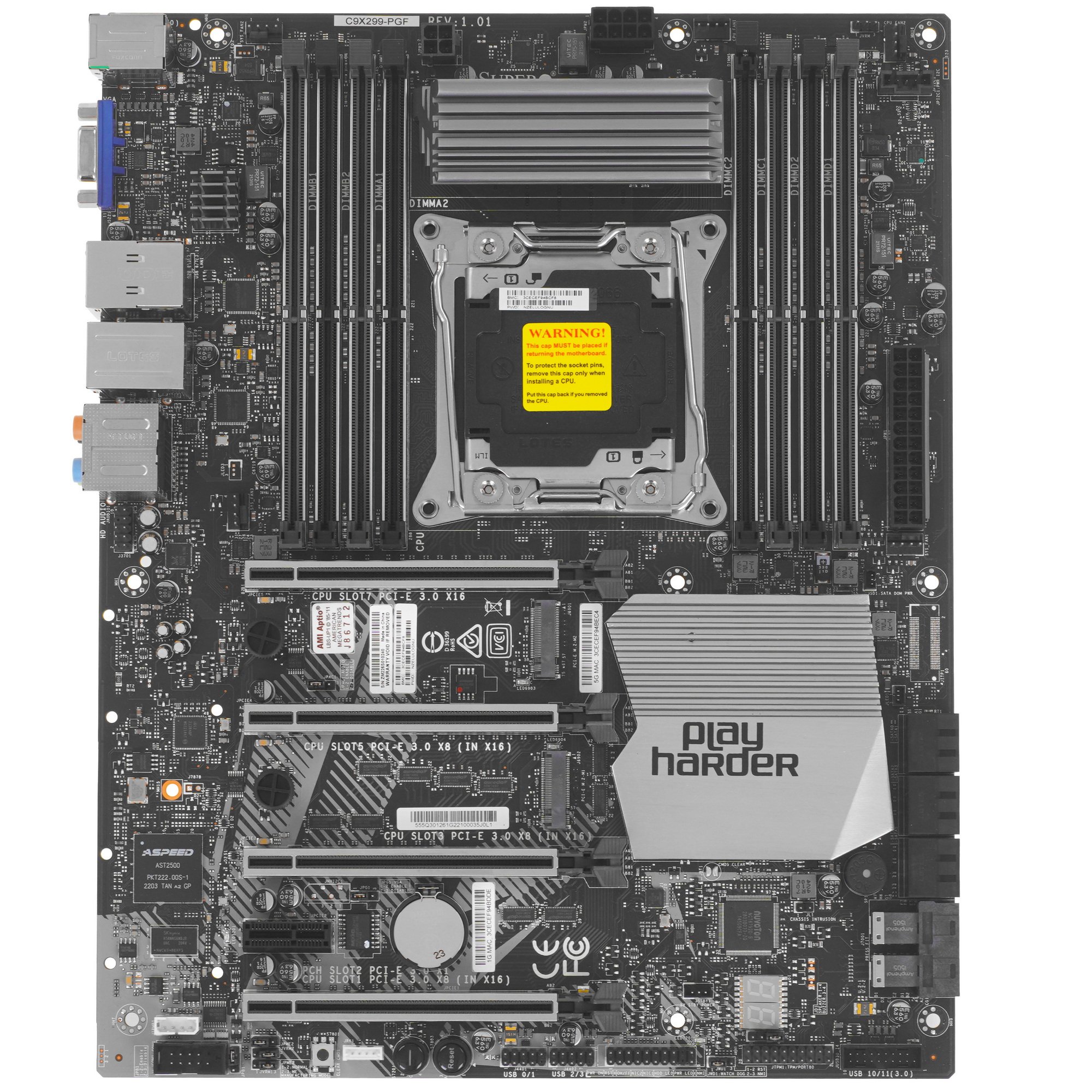 Серверная материнская плата Supermicro MBD-C9X299-PGF выполняется в типоразмере Standard-ATX и дает возможность собрать системный блок для сервера со всеми необходимыми компонентами. Модуль предполагает установку центрального процессора с сокетом LGA 2066, например, модели Intel Core i7 или Intel Core i9. Благодаря предустановленной графике ASPEED AST2500 плата позволит собранной вами системе работать с несложным графическим контентом.