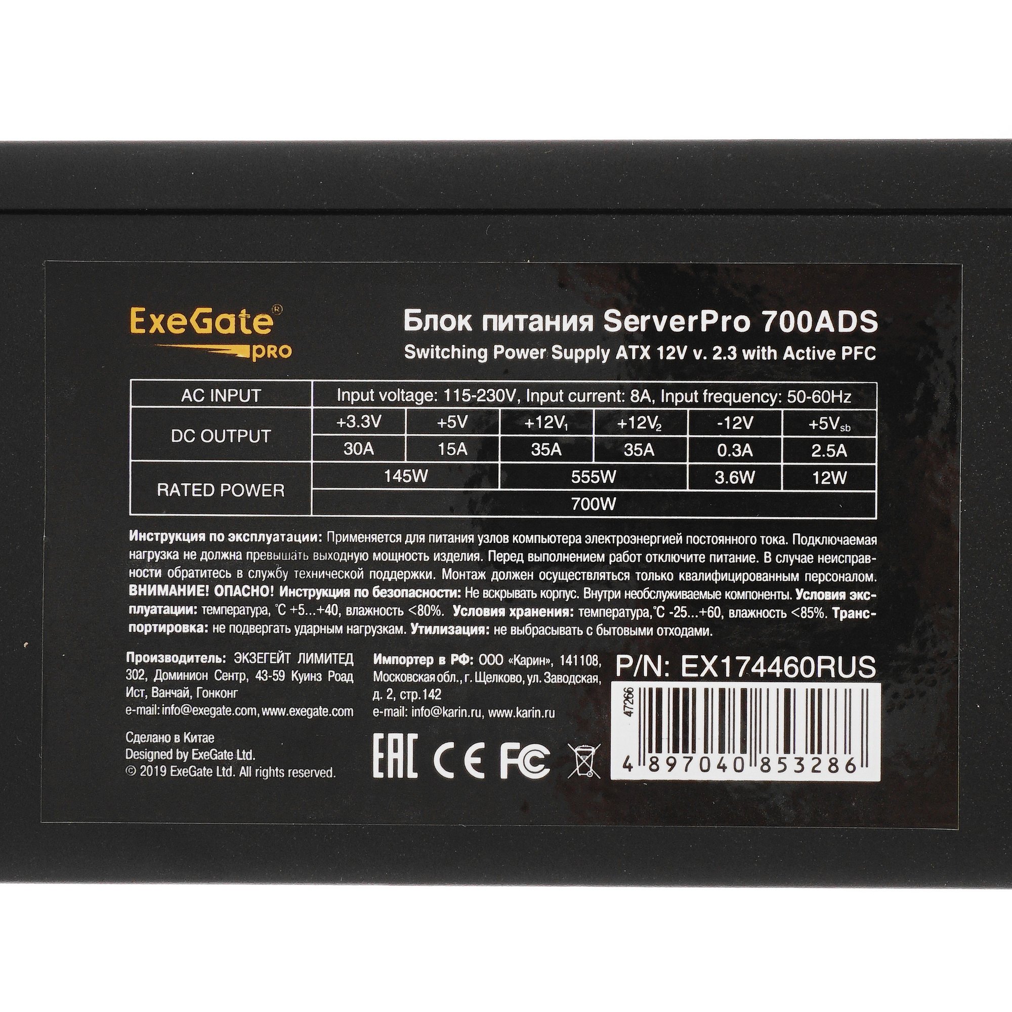 Блок питания серверный ExeGate (RM-700ADS) APFC,2х8см fan, 20+4pin/(4+4)pin+(4+4)pin, 2xPCI-E, 9xSATA
