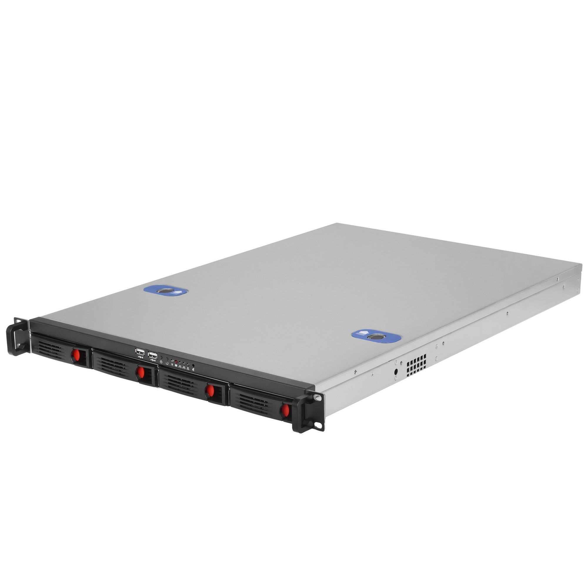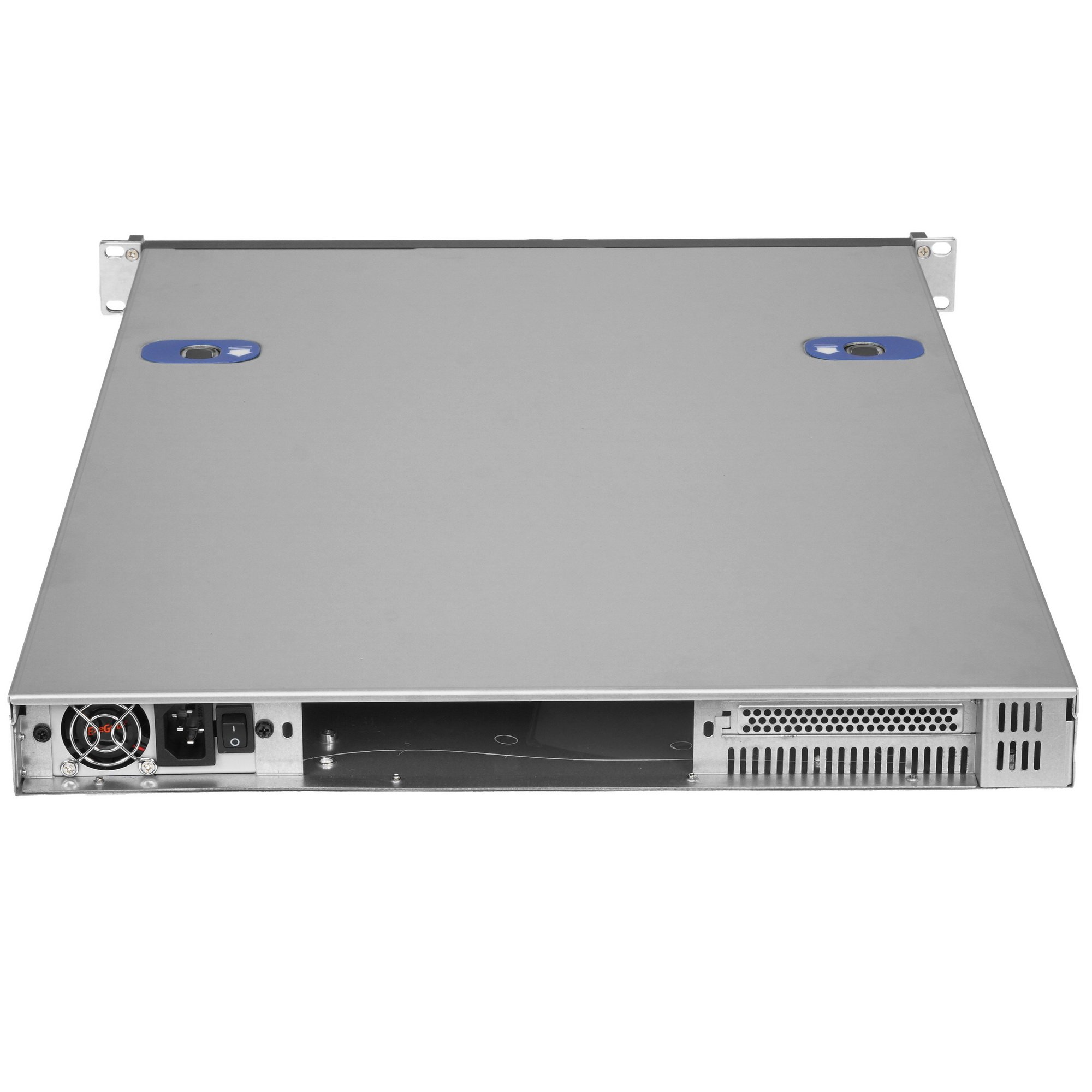 Корпус охлаждается 5 вентиляторами типоразмера 40 мм. Для подключения внешних накопителей и периферийных устройств используются 2 порта USB на лицевой панели. Управление осуществляется кнопками питания и перезагрузки. Длина, ширина и высота корпуса равны 660, 430 и 45 мм соответственно. Цвет фронтальной панели – черный.