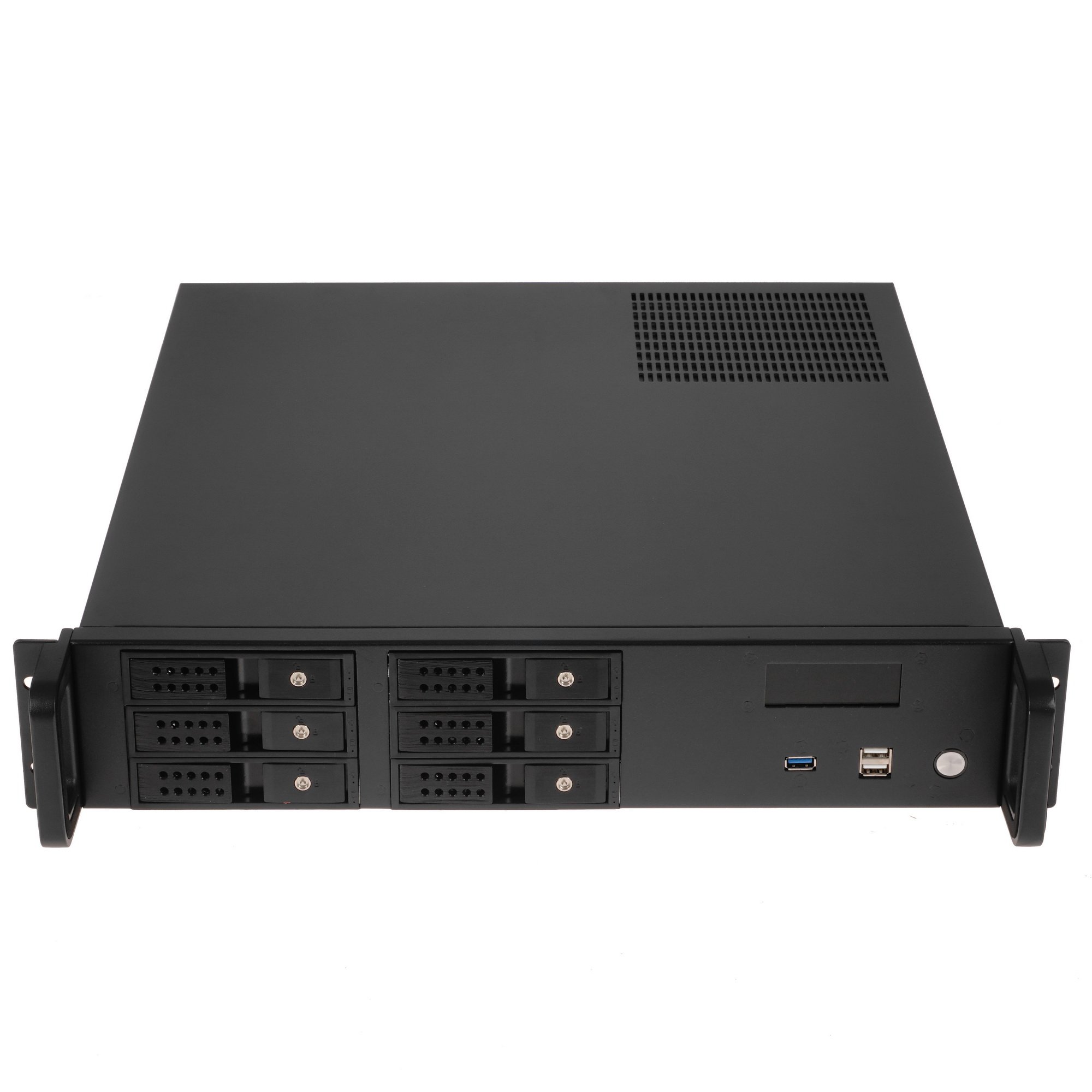 Корпус для серверного системного блока ExeGate Pro 2U480-HS06 располагает на фронтальной панели разъемами USB 2.0 Type A (2 шт.) и USB 3.2 Gen 1 Type-A для взаимодействия с периферийными устройствами. Задачу отвода тепла от нагревающихся компонентов сборки решают два смонтированных в корпусе кулера размером 80 мм.