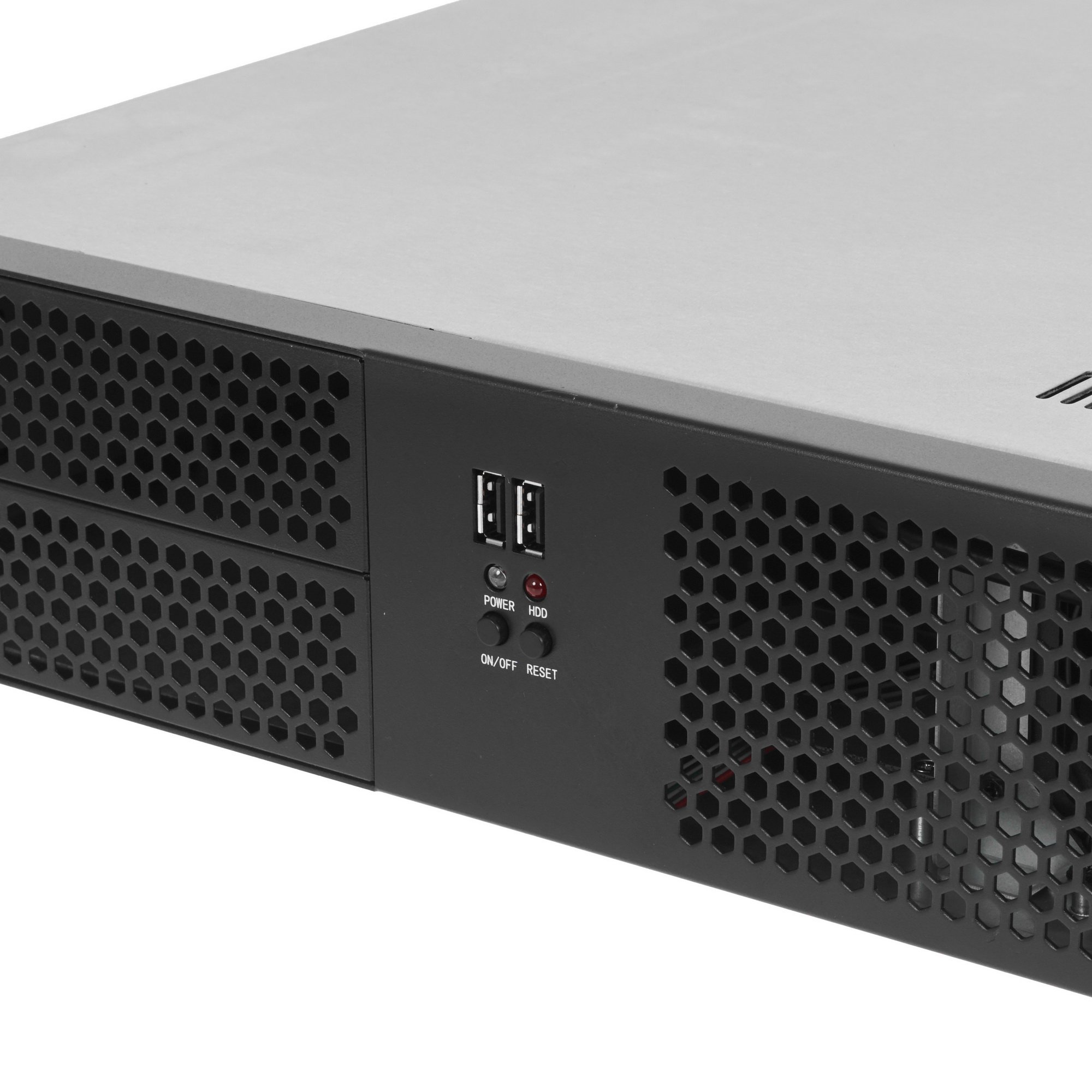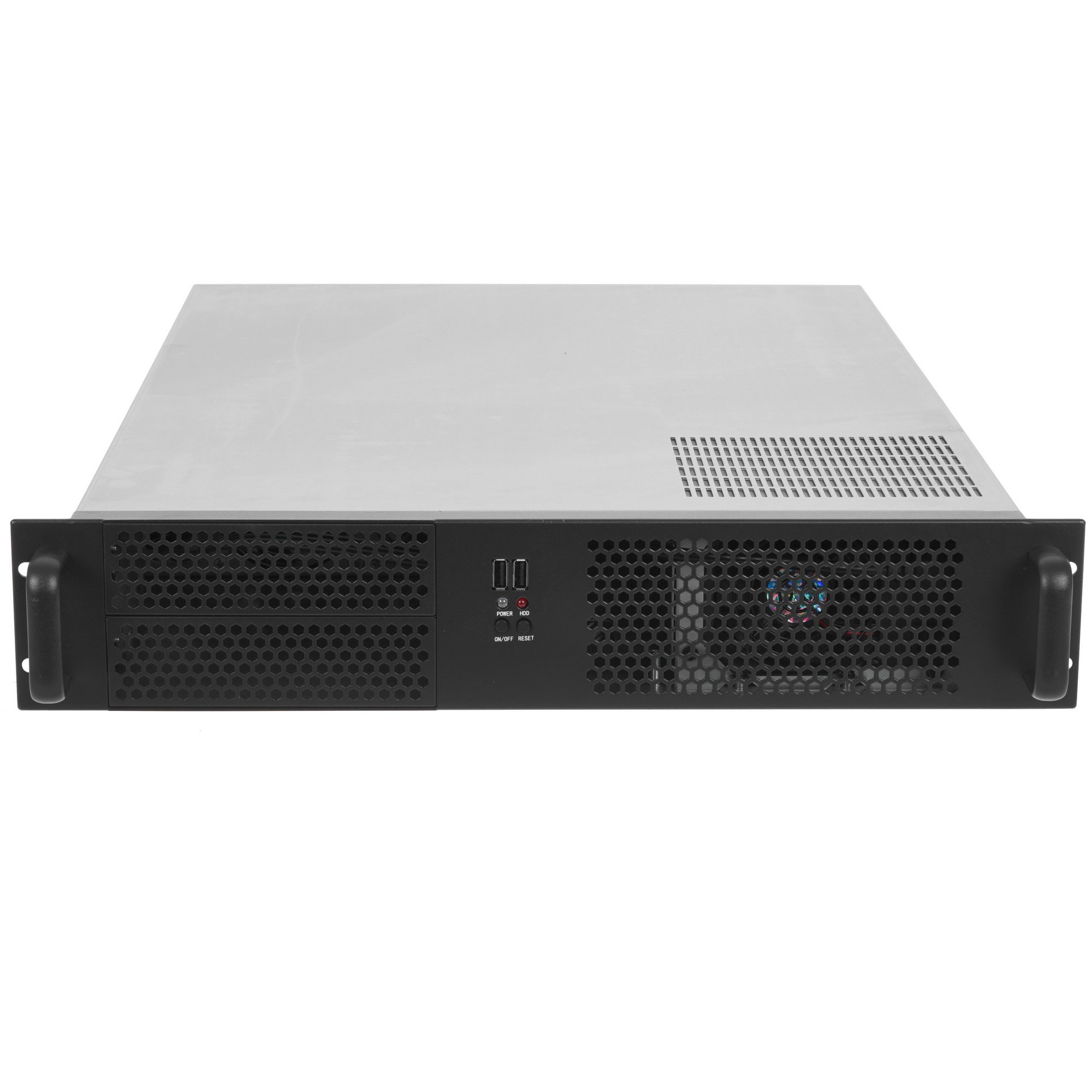 В корпусе для сервера ExeGate Pro 2U650-08 предусмотрено 7 отсеков 3.5"под накопители и 2 отсека под модули типоразмера 5.25". Задачу отвода тепла от компонентов сборки под нагрузкой решают смонтированные в заднюю панель вентиляторы размером по 80 мм (3 ед.). Подключение периферийных устройств к серверу возможно за счет интерфейсов USB 2.0 Type A x2 на передней панели корпуса.