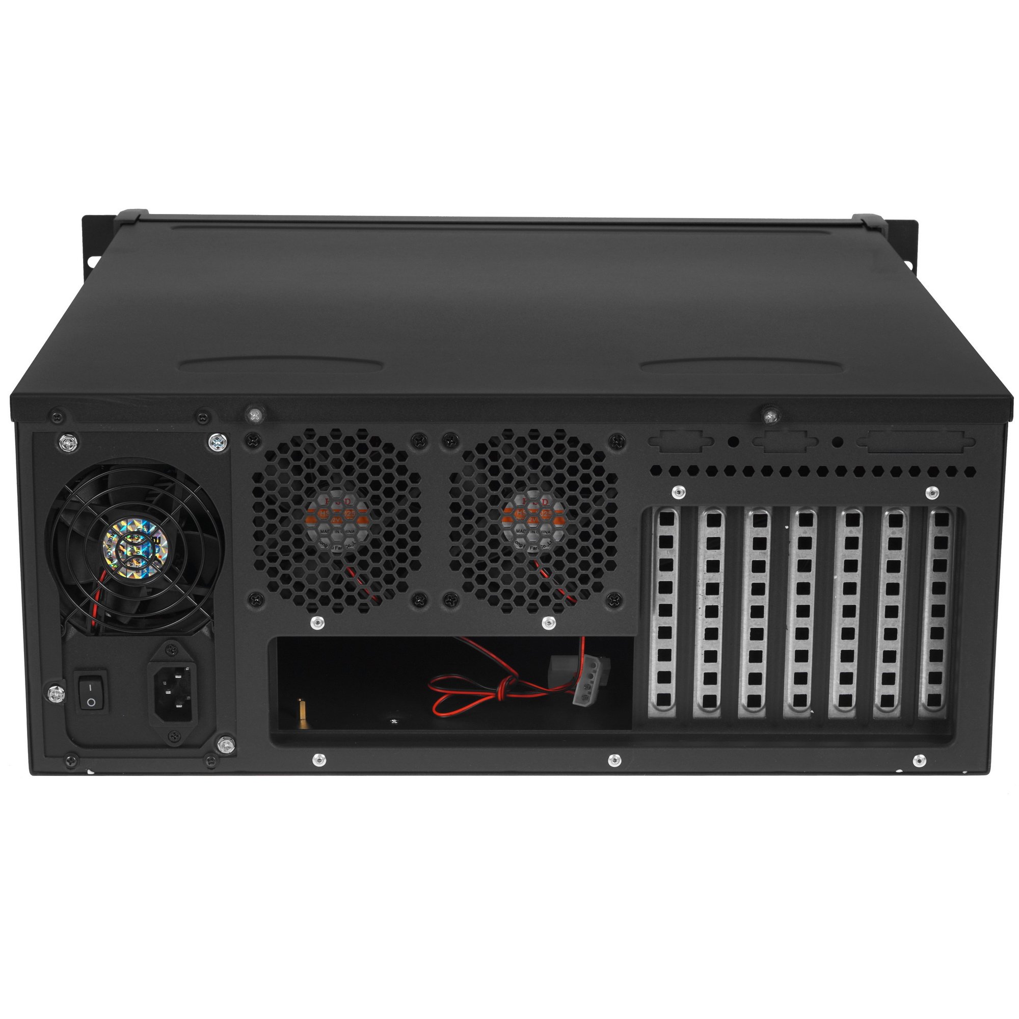 Серверный корпус ExeGate Pro 4U450-07/4U4017S окрашен в черный цвет и рассчитан на установку материнской платы Standard-ATX. Модель с установочной высотой 4U совместима с 19-дюймовыми стойками для телекоммуникационной техники. Предустановленный блок питания с мощностью 800 Вт на выходе используется для снабжения постоянным током потребителей вашей серверной сборки.