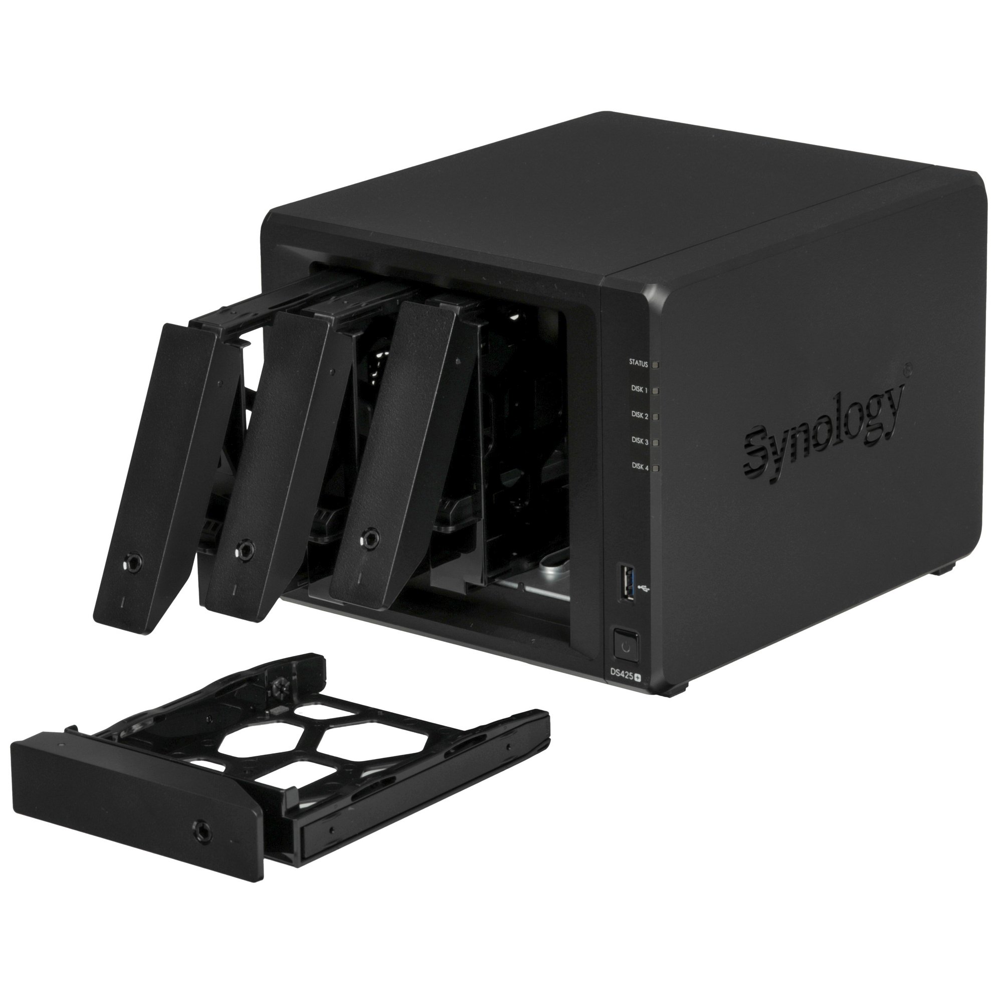 Сетевое хранилище Synology DiskStation DS425+ черный (Intel J4125/2Gb/4(3.5"/2.5"SATA/SSD) + 2 NVMe/RAID/1x1Gb/1x2.5Gb/2хUSB 3.2/no WIFI) (DS425+)