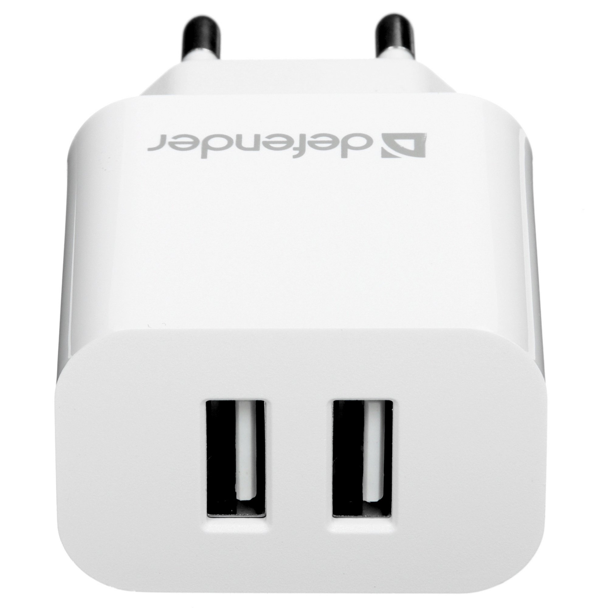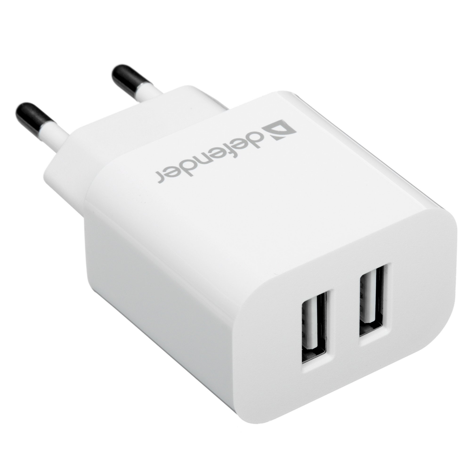 Сетевой адаптер Defender 2xUSB, 2.1А, белый (UPA-22)