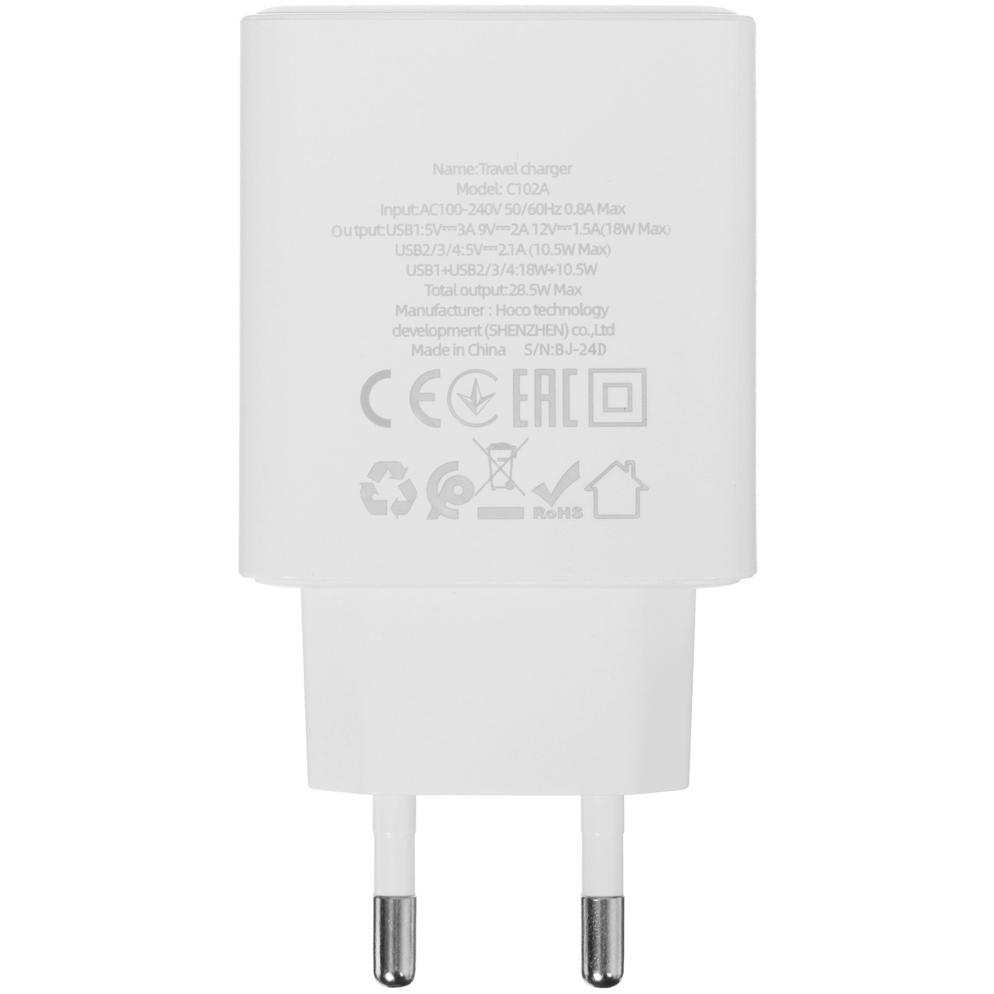 Сетевое зарядное устройство HOCO (6931474777713) C102A белый СЗУ 4USB 2.1A QC3.0 быстрая зарядка