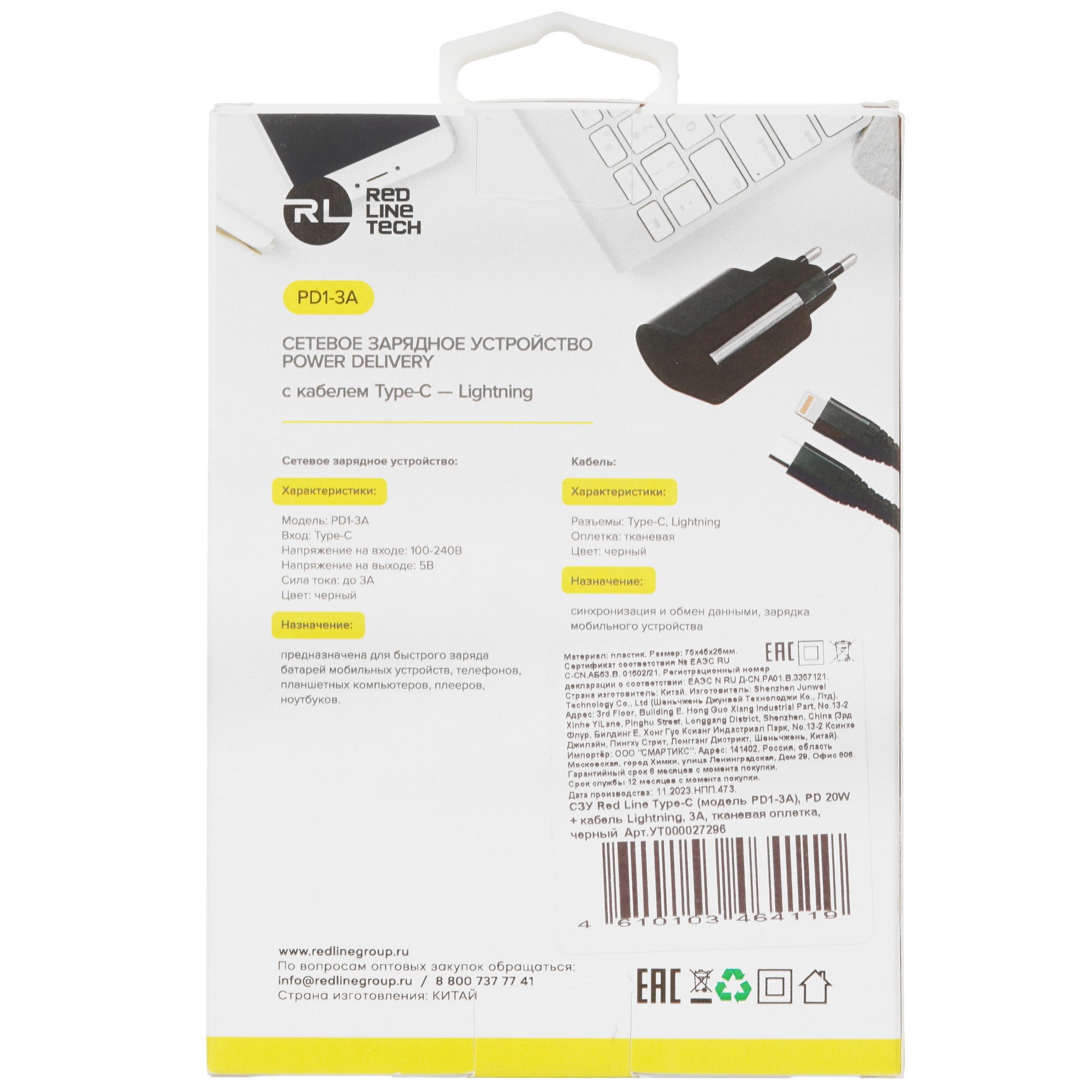 Red Line PD1-3A поддерживает технологию быстрой зарядки Power Delivery. Есть встроенные системы защиты от перенапряжения, перегрузки и короткого замыкания. Благодаря разъему USB Type-C СЗУ подходит для зарядки разных типов и моделей мобильных устройств.