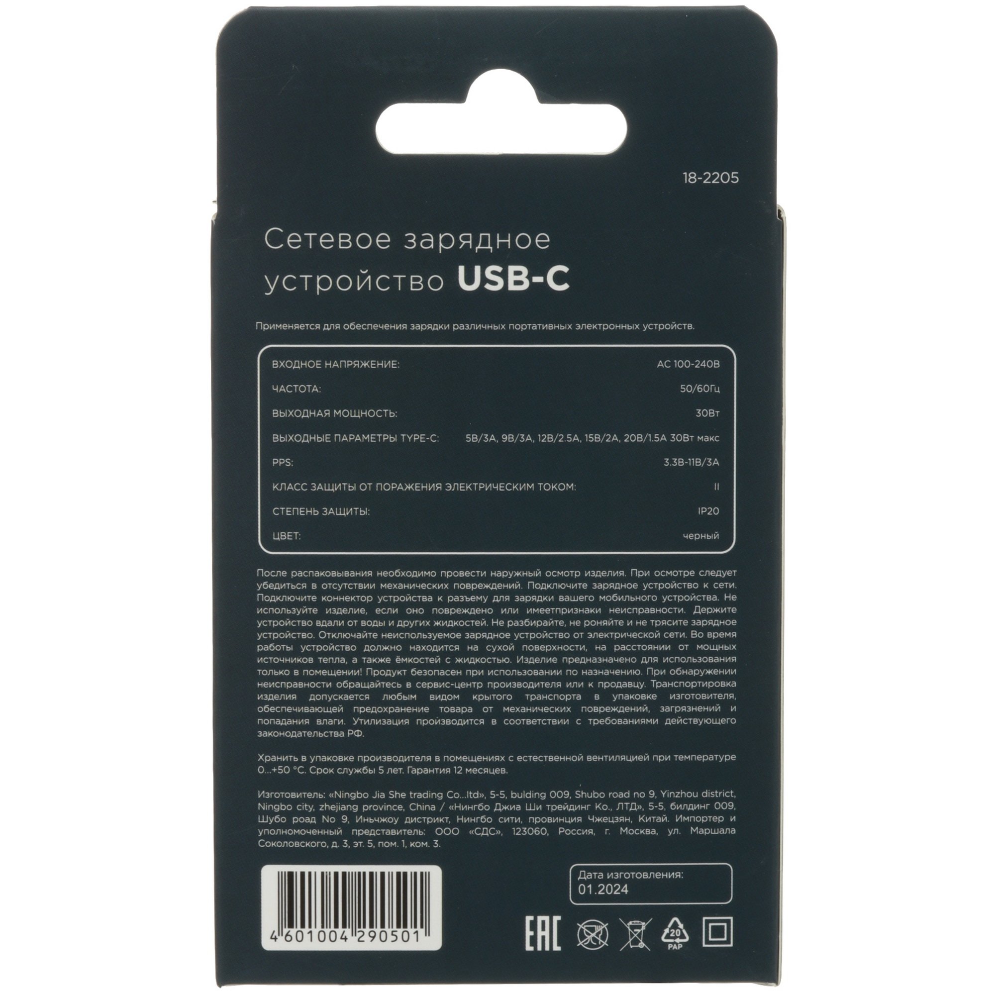 Сетевое зарядное устройство Rexant с одним портом Type-C, 30Вт GaN