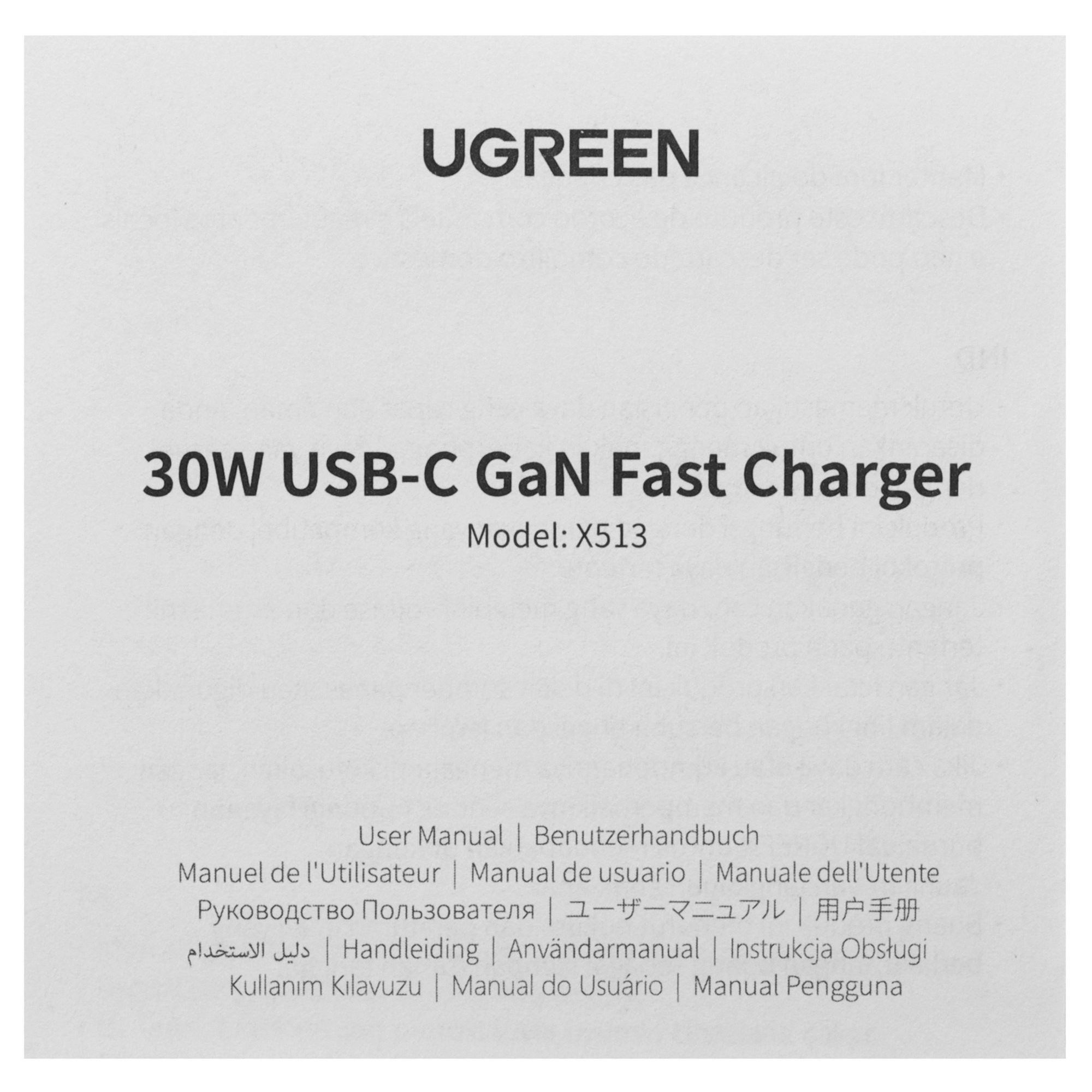 Сетевое зарядное устройство Ugreen X513 с выходной мощностью 30 Вт подходит для зарядки смартфона, планшета, беспроводных наушников, электронных приборов и другой портативной техники. Оно оснащено разъемом USB стандарта Type-C с током на выходе в пределах 3 А. Технологии Power Delivery и Quick Charge обеспечивают ускоренное восстановление энергоресурса совместимых устройств.