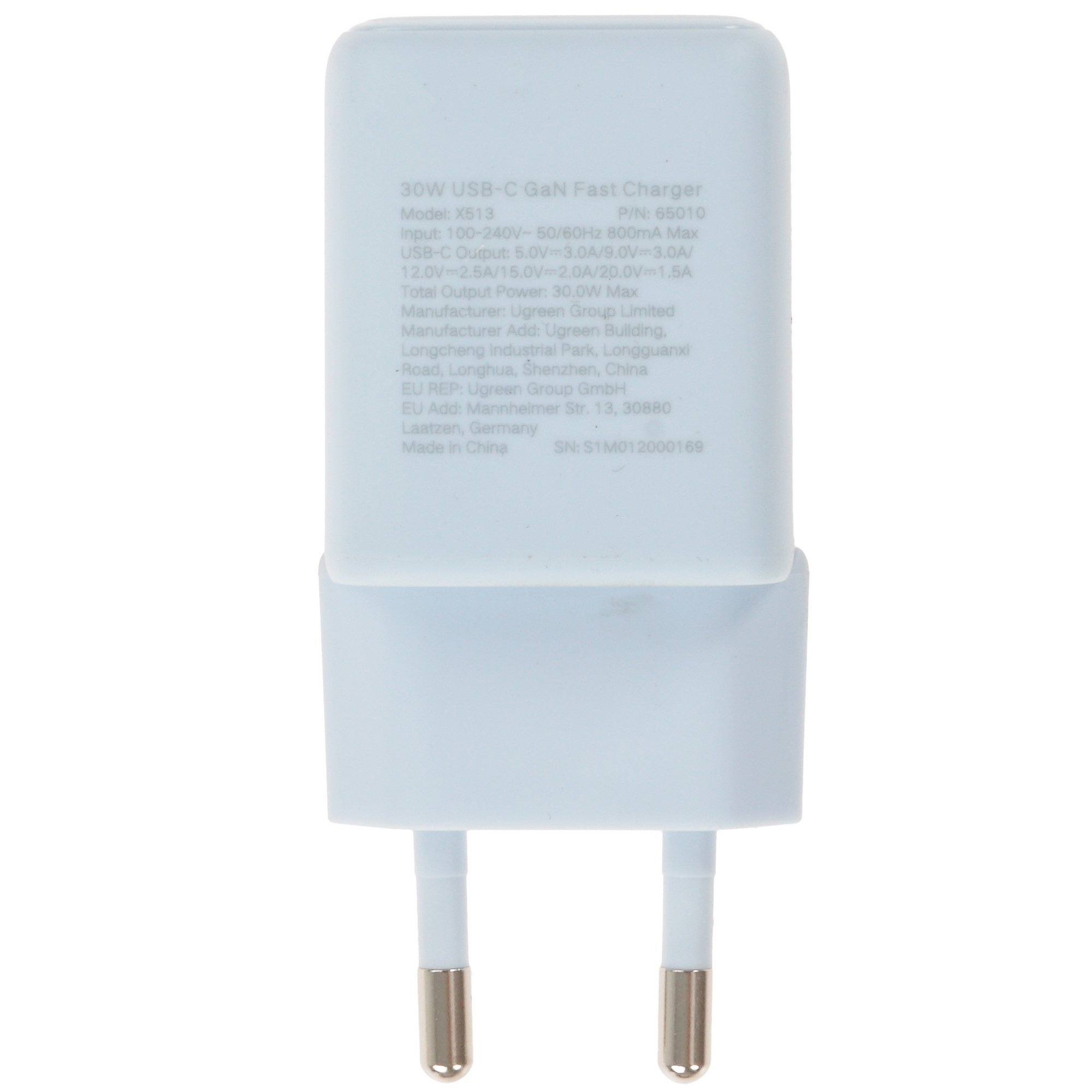Сетевое зарядное устройство Ugreen X513 с выходной мощностью 30 Вт подходит для зарядки смартфона, планшета, беспроводных наушников, электронных приборов и другой портативной техники. Оно оснащено разъемом USB стандарта Type-C с током на выходе в пределах 3 А. Технологии Power Delivery и Quick Charge обеспечивают ускоренное восстановление энергоресурса совместимых устройств.
