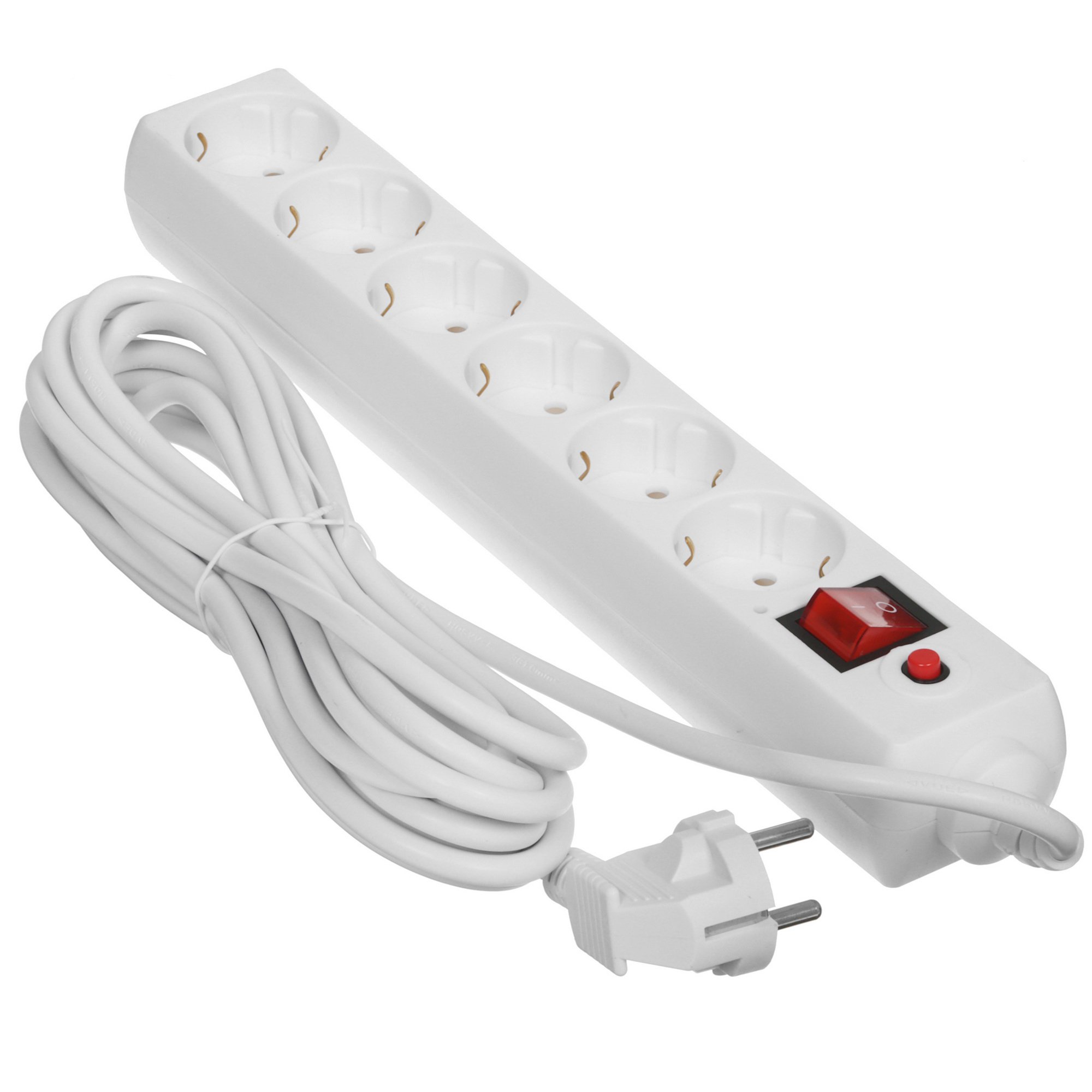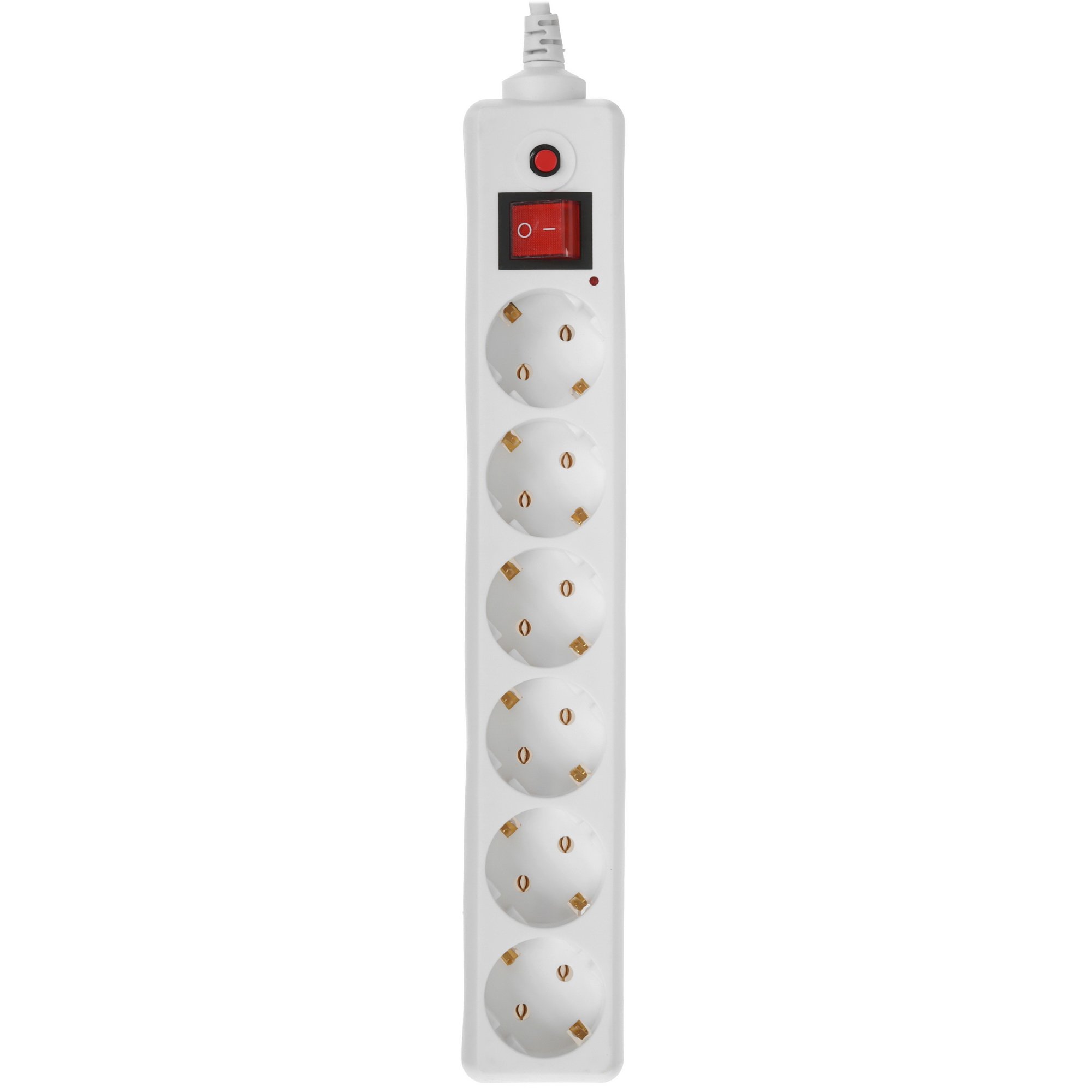Белый сетевой фильтр Buro 600SH-5-W оснащен шестью розетками евростандарта F с заземлением. Все розетки управляются общим выключателем, позволяющим отключать питание всей подключенной техники без необходимости извлекать все вилки из розеток. Там же на корпусе предусмотрен световой индикатор, который сообщает о состоянии работы сетевого фильтра и его подключении к сети.