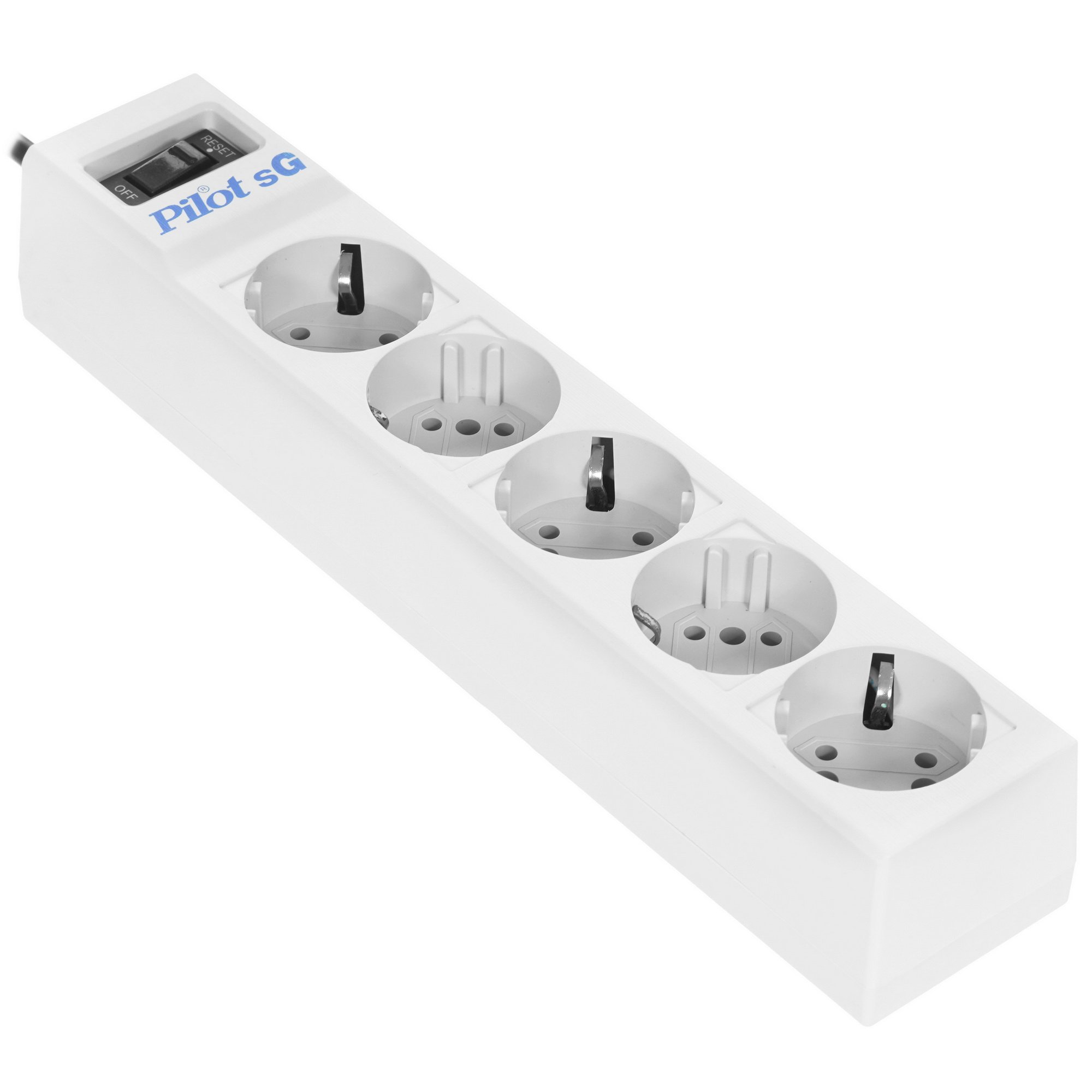 Сетевой фильтр Pilot sG представляет собой производительное и функциональное решение с широкими возможностями подключения. Отличительной особенностью модели является 5 розеток формата Gadget Parking, что позволяет одновременно подключать до 10 различных устройств — будь то компьютерное оборудование, бытовая или офисная техника. Сетевой фильтр Pilot sG снабжен защитой от импульсных помех и грозового разряда, имеет защиту от перегрузки, тока короткого замыкания и критического повышения температуры внутри корпуса. Максимальная мощность подключения составляет 2200 Вт, а максимальный ток нагрузки может достигать 10 А.