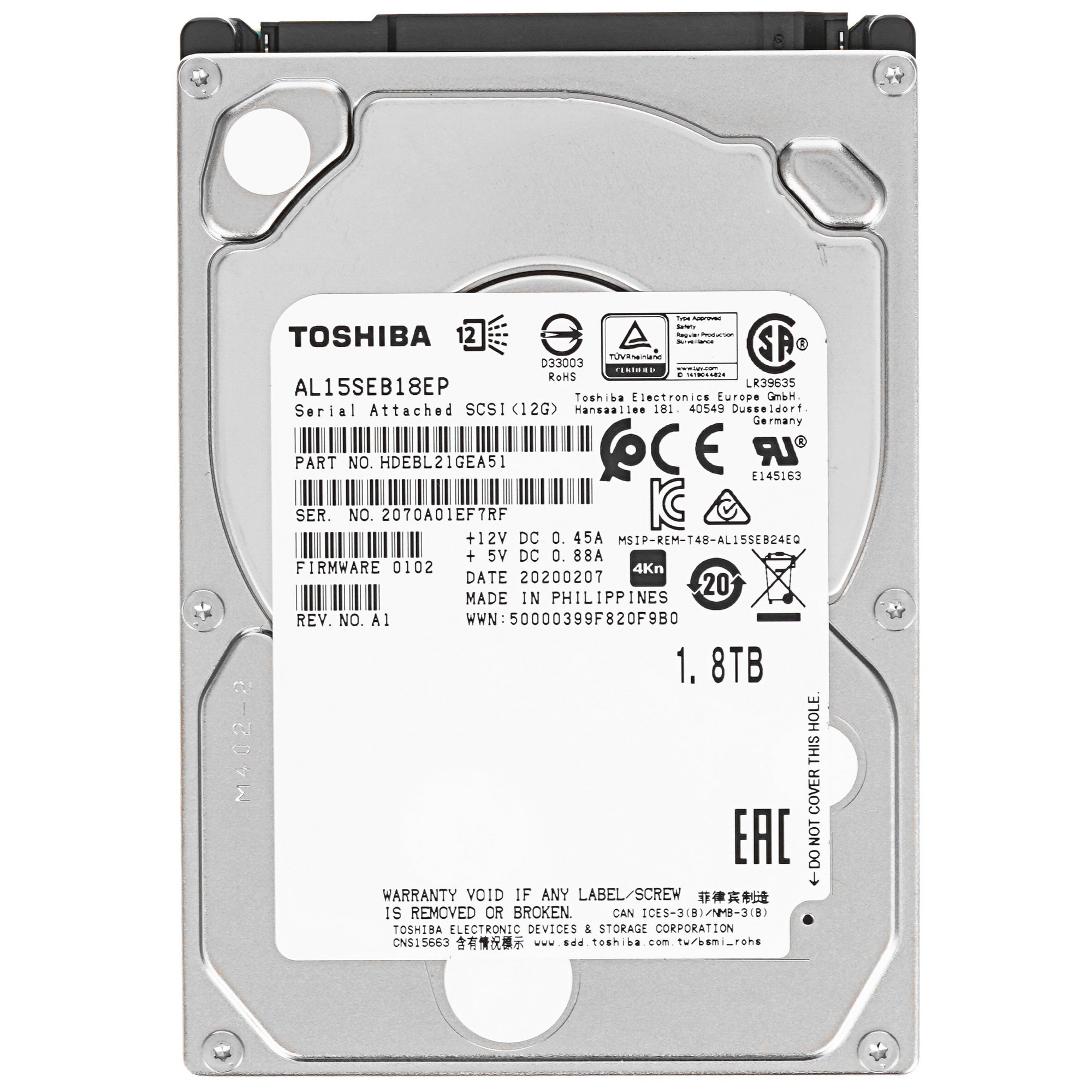 Жесткий диск HDD Toshiba SAS 1.8Tb 2.5" 10K 128Mb 1 year warranty (replacement AL15SEB18EQ)