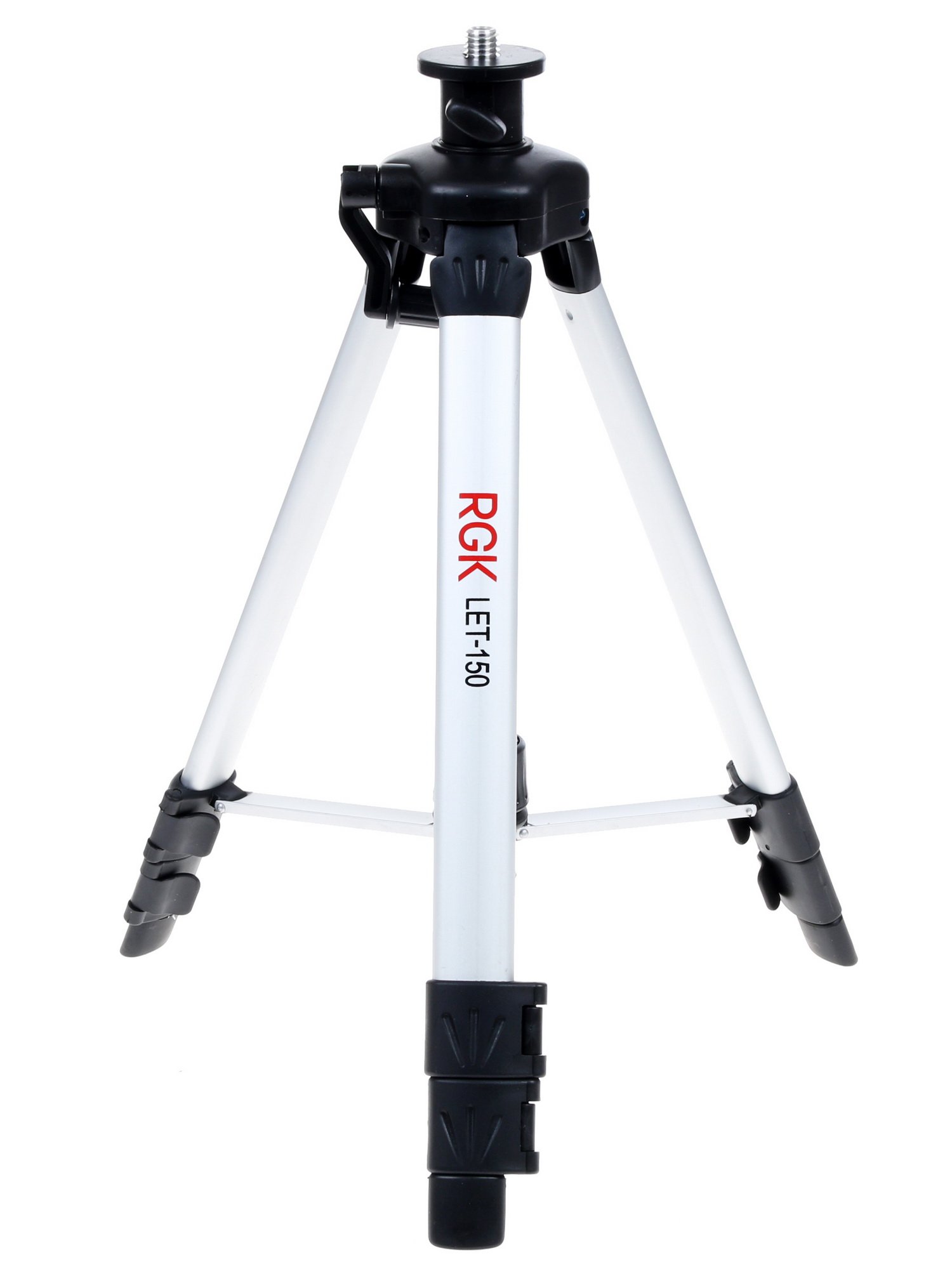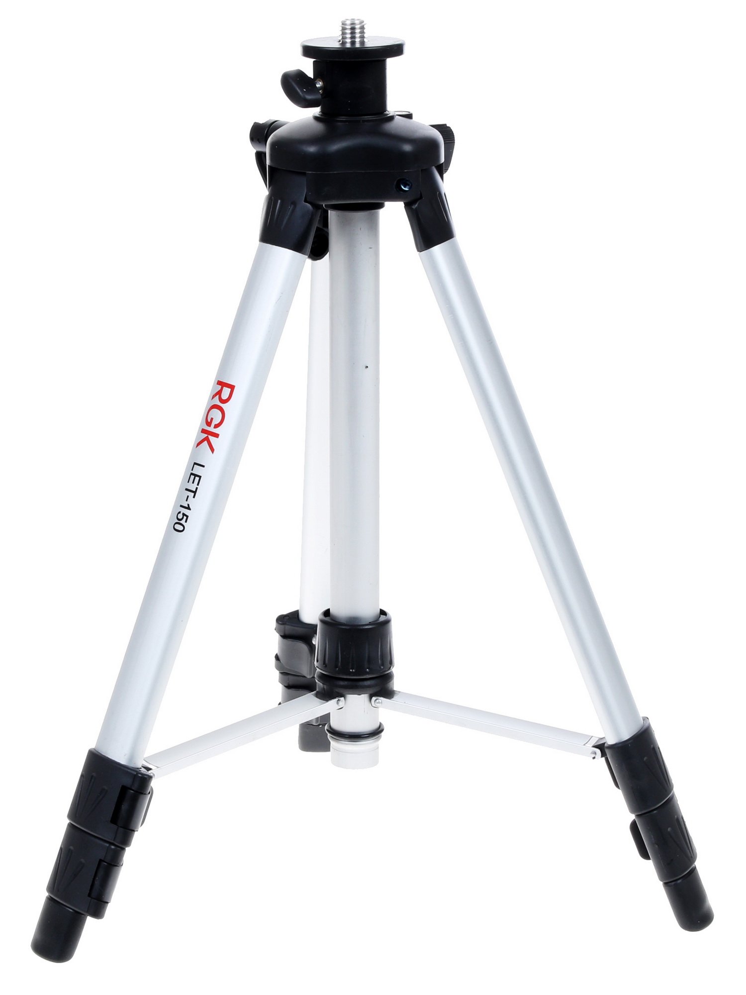 Штатив RGK LET-150 является легкой треногой с платформой и резьбовым соединением 5/8" наверху, обеспечивающим установку лазерного уровня или нивелира. Максимальная высота расположения при выдвинутой подъемной платформе штатива достигает 145 см. Минимальная высота установки прибора составит 50 см. Платформа с винтом 5/8" оборудована надежным подъемным механизмом, детали которого выполнены из качественного металла. На ней можно смонтировать не только строительное оборудование, но и фотоаппарат, видеокамеру.