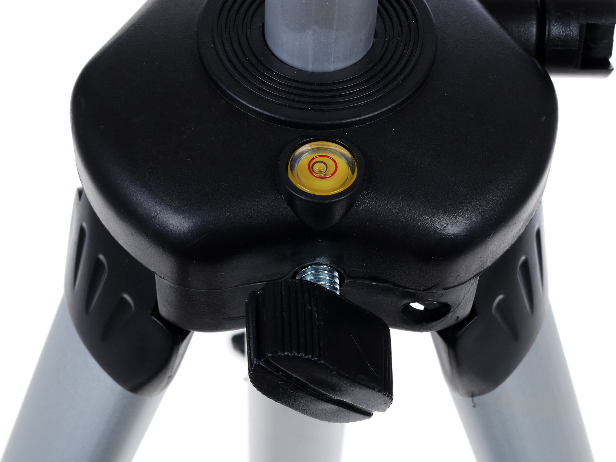 Материалом для изготовления легких и прочных ножек штатива RGK LET-150 послужил алюминиевый сплав. Изделие устойчиво размещается на полу или другой ровной горизонтальной поверхности и предлагает пузырьковый уровень для наиболее точного горизонтального выравнивания платформы с прибором. Переносить телескопический алюминиевый штатив к месту проведения измерительных и разметочных работ удобно в черной сумке, включенной в комплект.