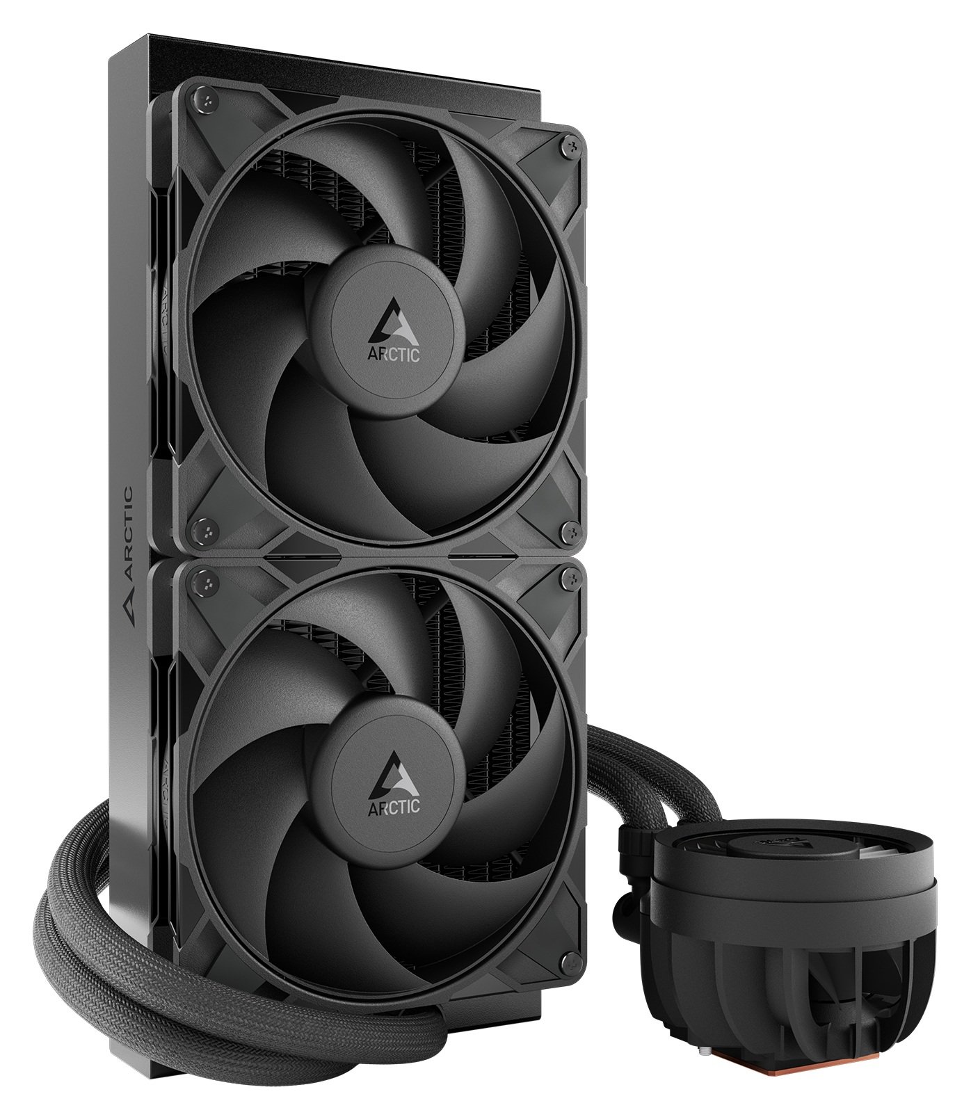 ARCTIC Liquid Freezer III 280 — это двухсекционная система жидкостного охлаждения процессора, отличающаяся высокой эффективностью и тишиной своей работы. Отличительными особенностями системы являются 38-мм радиатор, охлаждающая поверхность которого была увеличена на 23% путем увеличения плотности рёбер, и мощный 60-мм VRM-вентилятор, способный значительно понизить температуру зоны VRM на материнской плате. Данная модель оснащена двумя фирменными 140-мм P-вентиляторами, обеспечивающими очень высокое статическое давление воздуха.