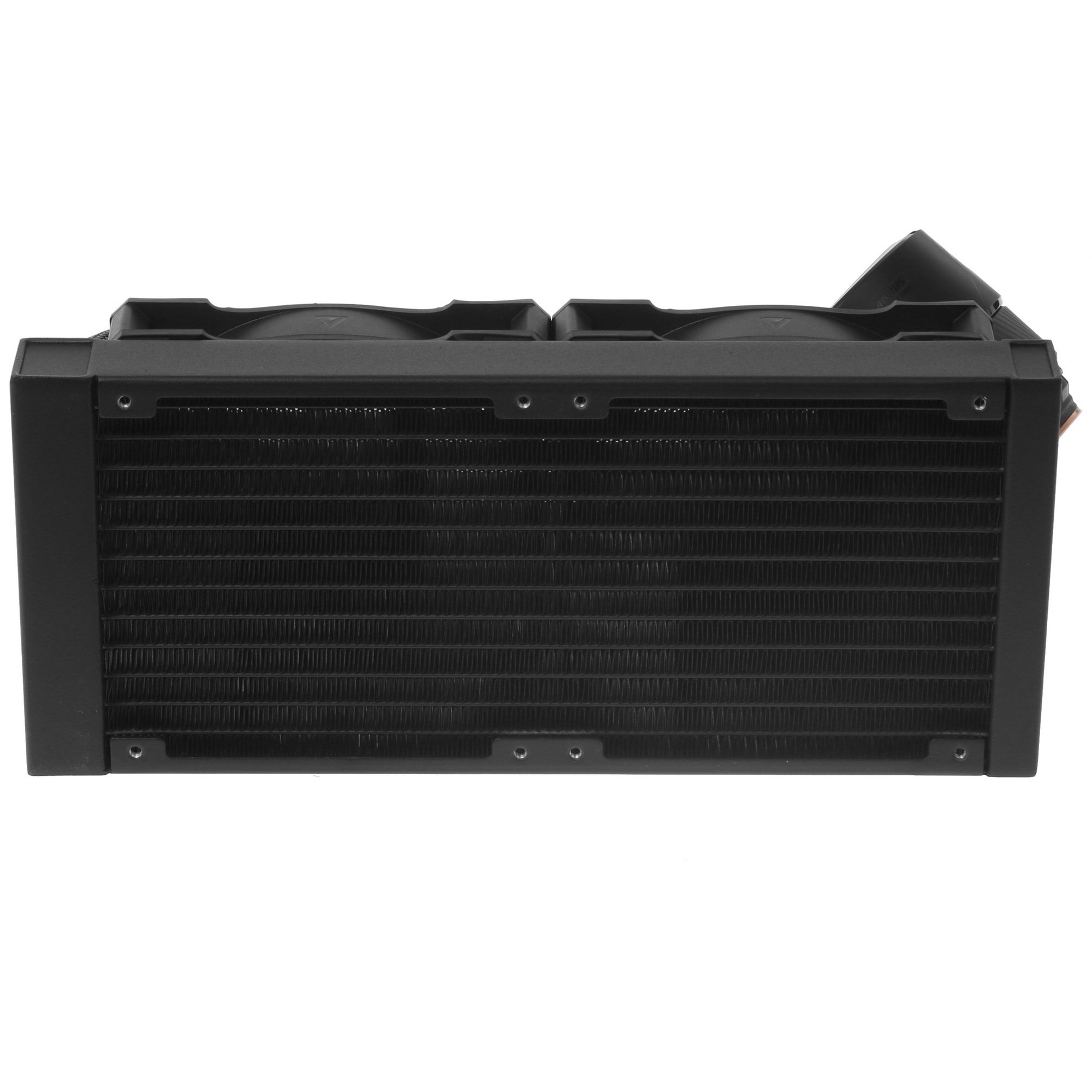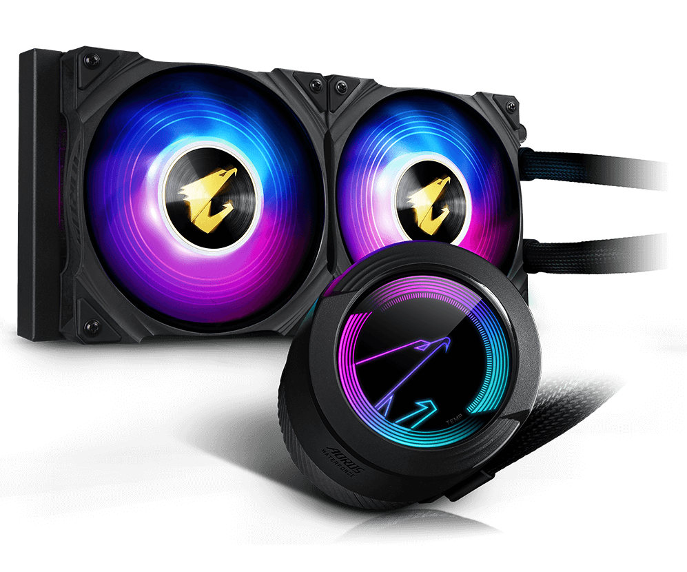 Система охлаждения GIGABYTE GP-AORUS WATERFORCE 240 оснащена парой 120-миллиметровых вентиляторов, частота вращения которых изменяется в диапазоне от 950 до 2150 оборотов в минуту. Скорость вращения регулируется в автоматическом режиме. Максимальный воздушный поток одного вентилятора составляет 56.47 CFM. Уровень шума при этом невысок – 31 дБ. Система охлаждения не доставляет пользователю ПК акустический дискомфорт.