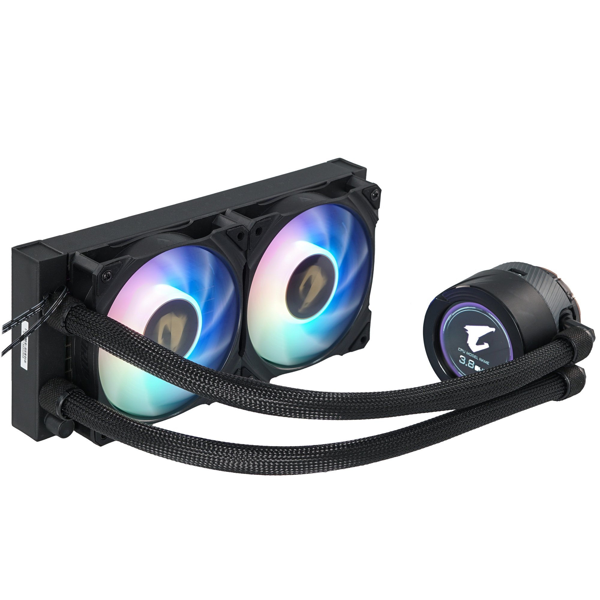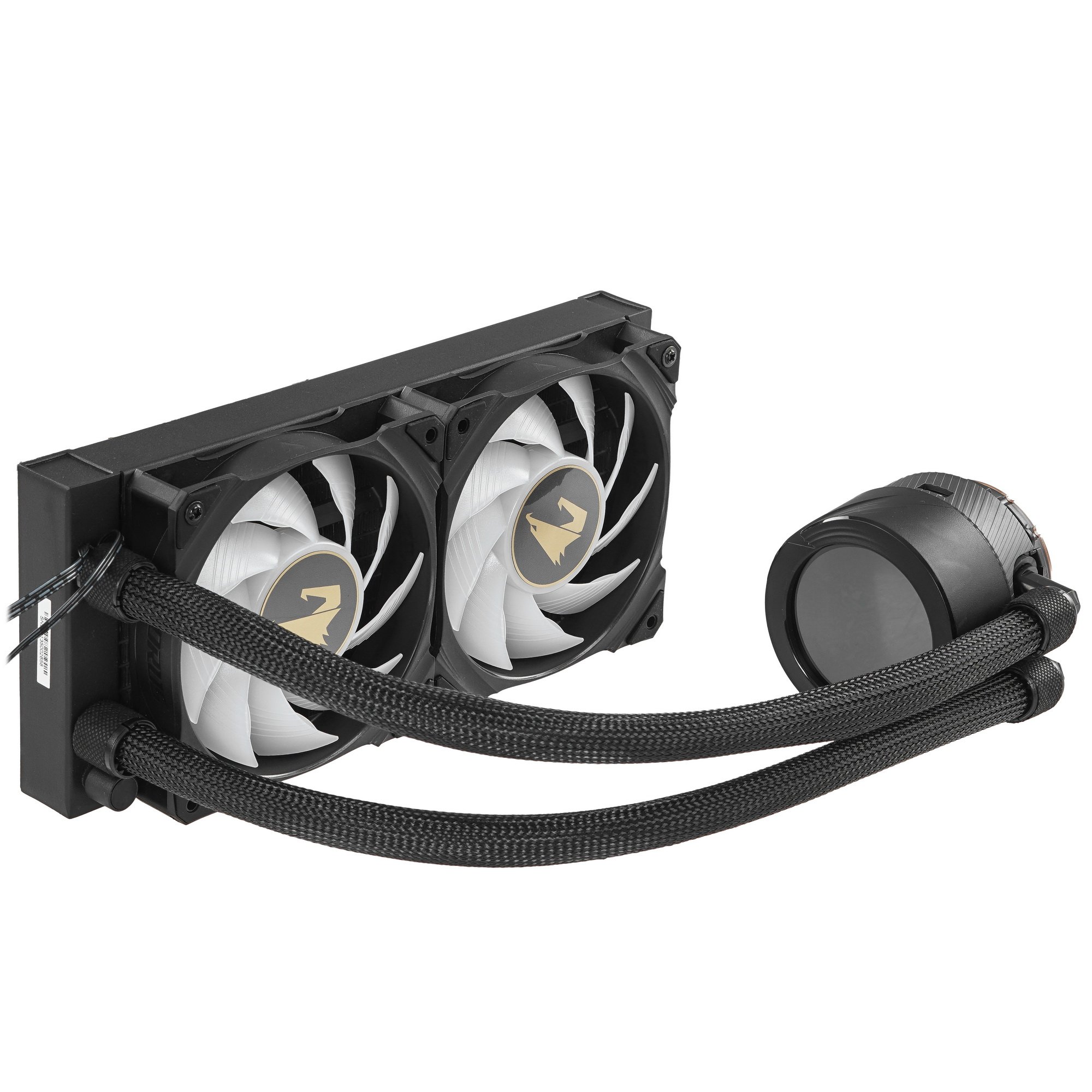 GIGABYTE GP-AORUS WATERFORCE X 240 оснащена 2 кулерами по 12x12 см с системой авторегулировки скорости. Водоблок и вентиляторы дополнены ARGB-подсветкой с поддержкой программирования для создания собственных режимов свечения. Графеновая смазка и особая форма лопастей гарантируют тихую работу кулеров и мощный поток воздуха для быстрого охлаждения процессора.